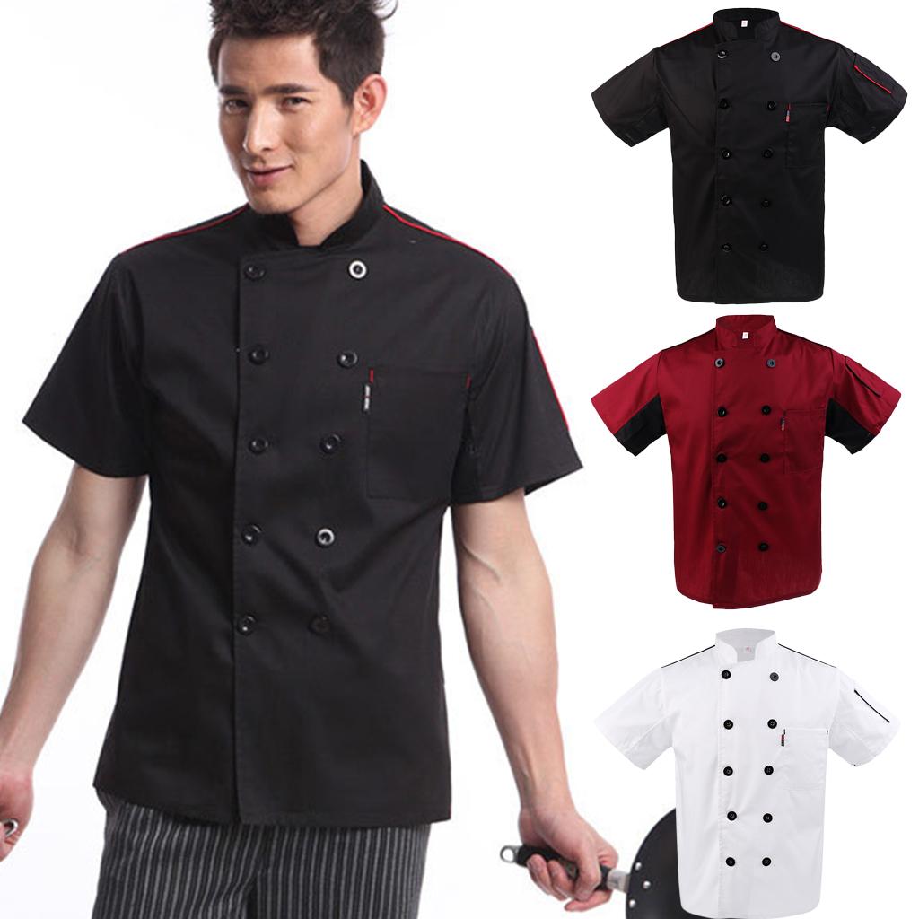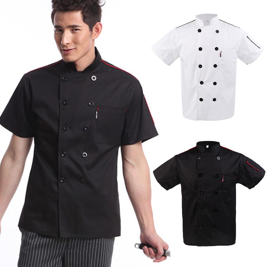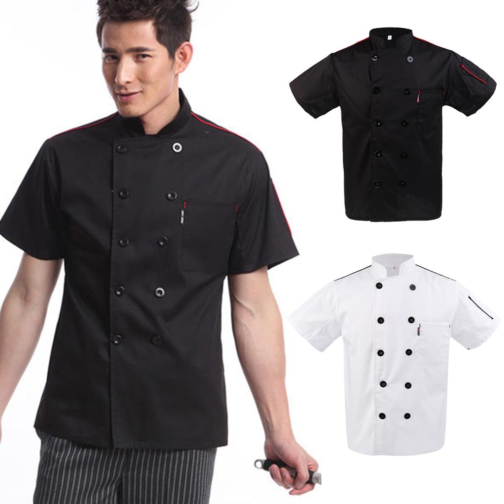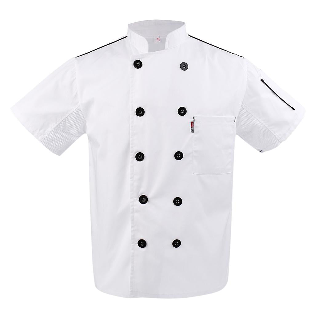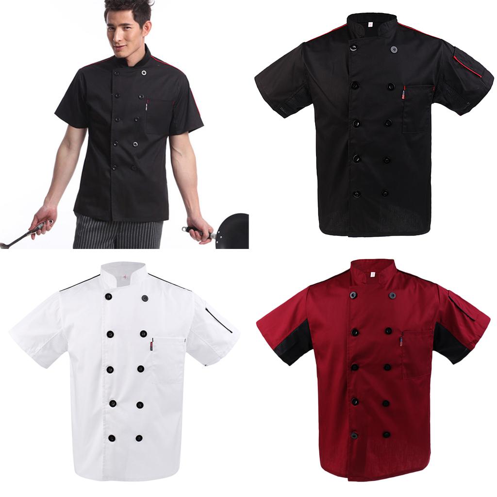 Unisex Double Breasted Short Sleeve Chef Jacket Coat Cook Hotel Uniform