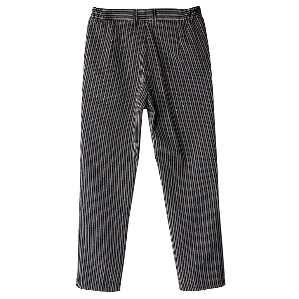 Chef Work Pants Restaurant Kitchen Uniform Cook Trousers Elastic Waist L Stripe