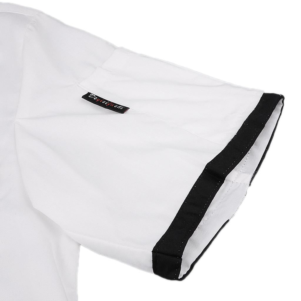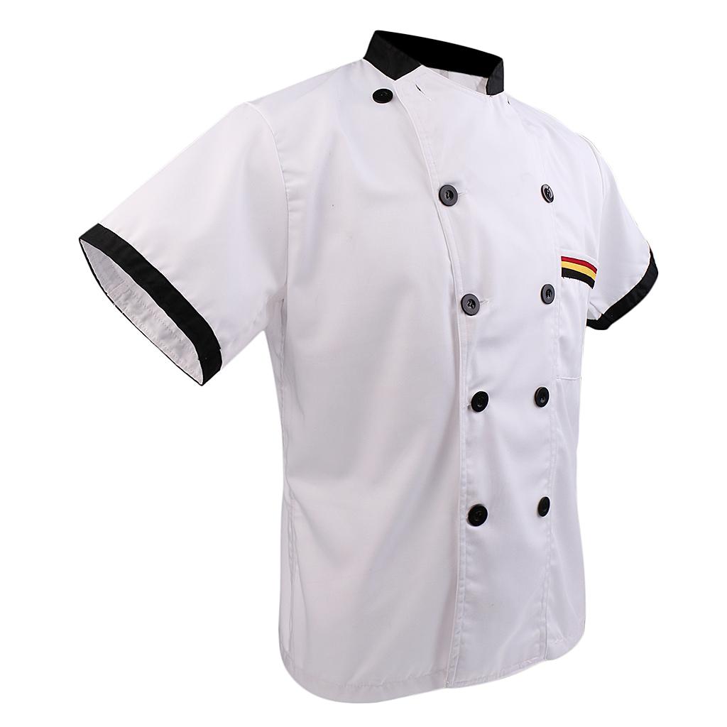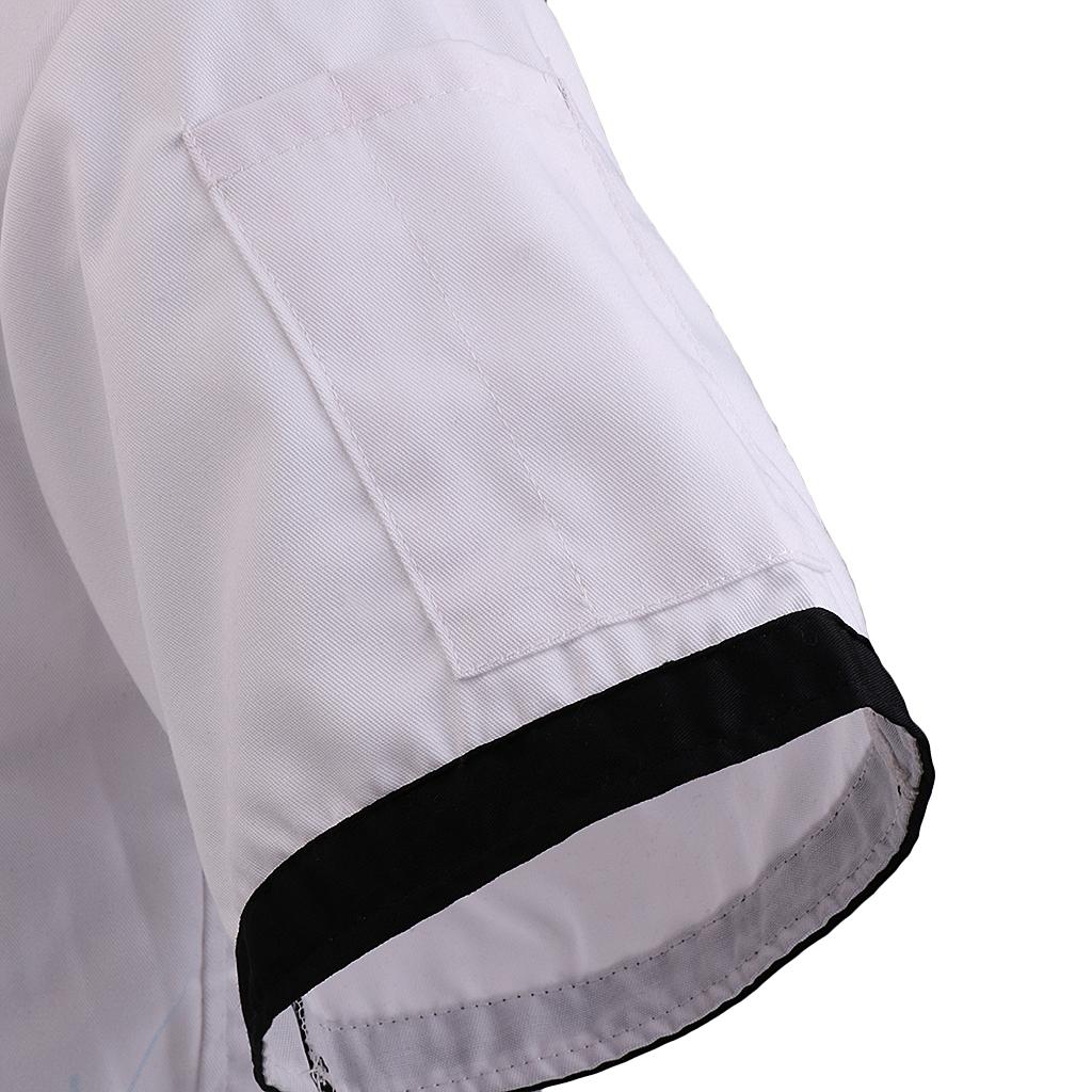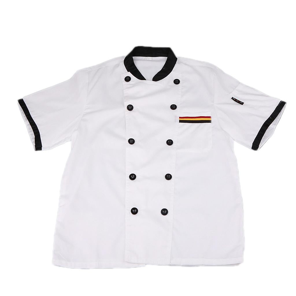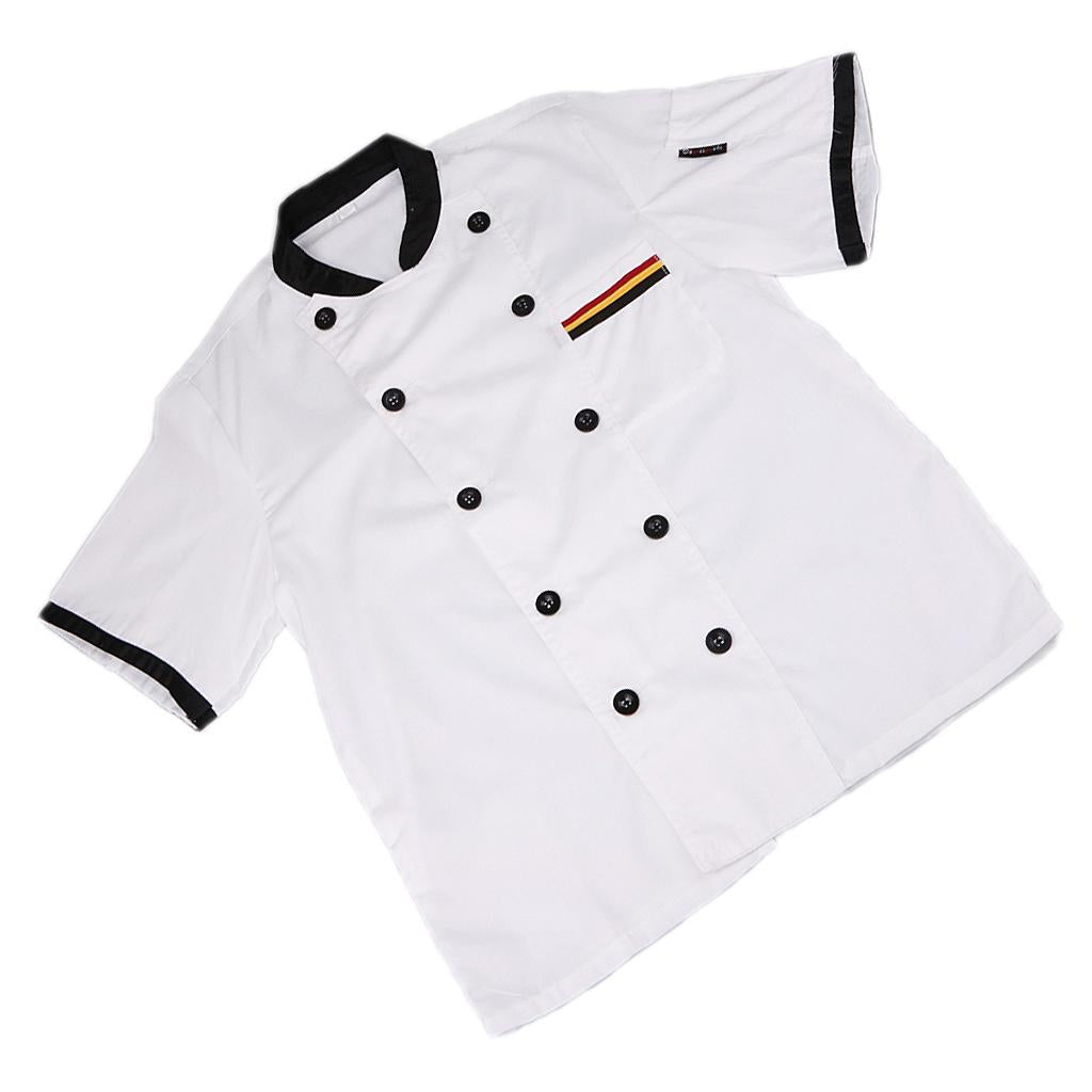 Men Women Chef Uniform Double Breasted Cook Jacket Coat Short Sleeve L White