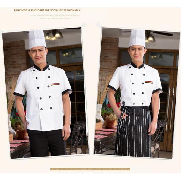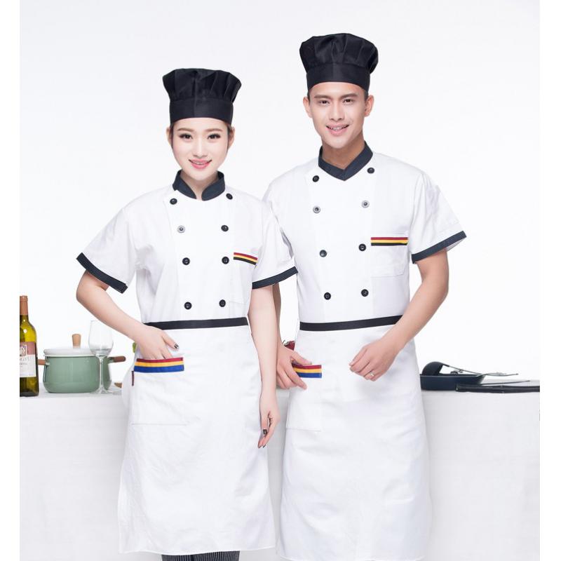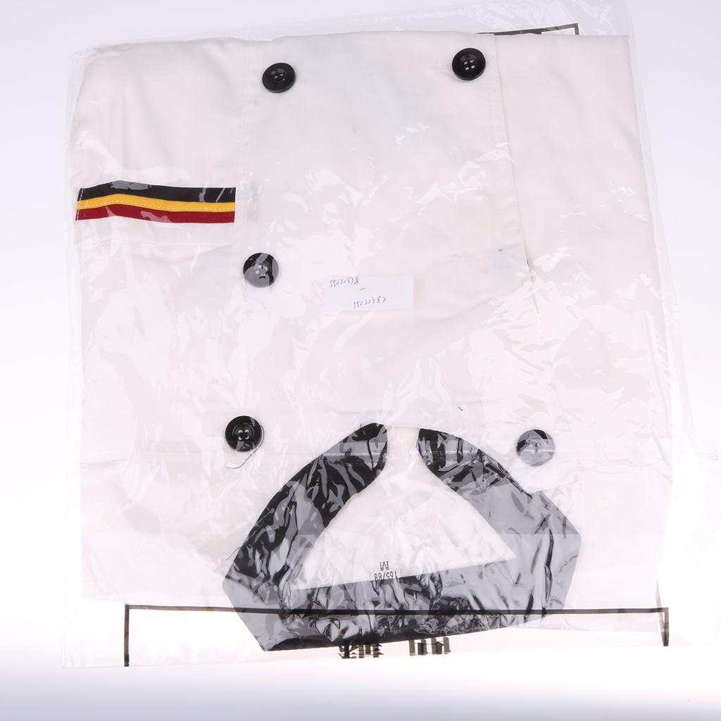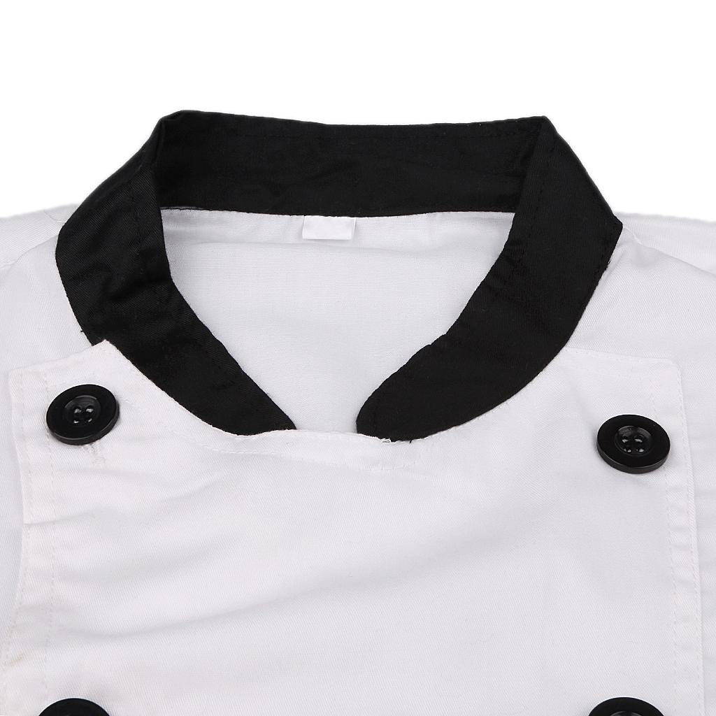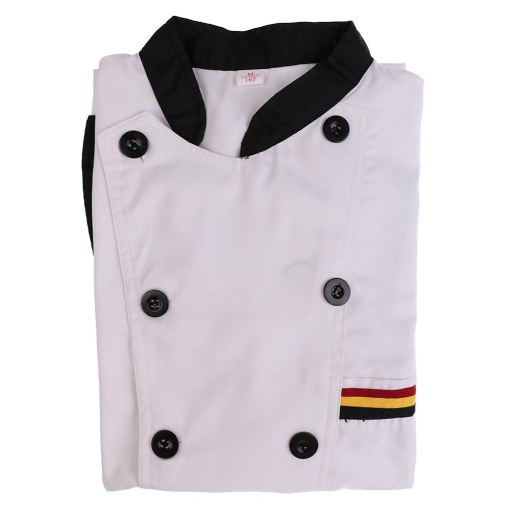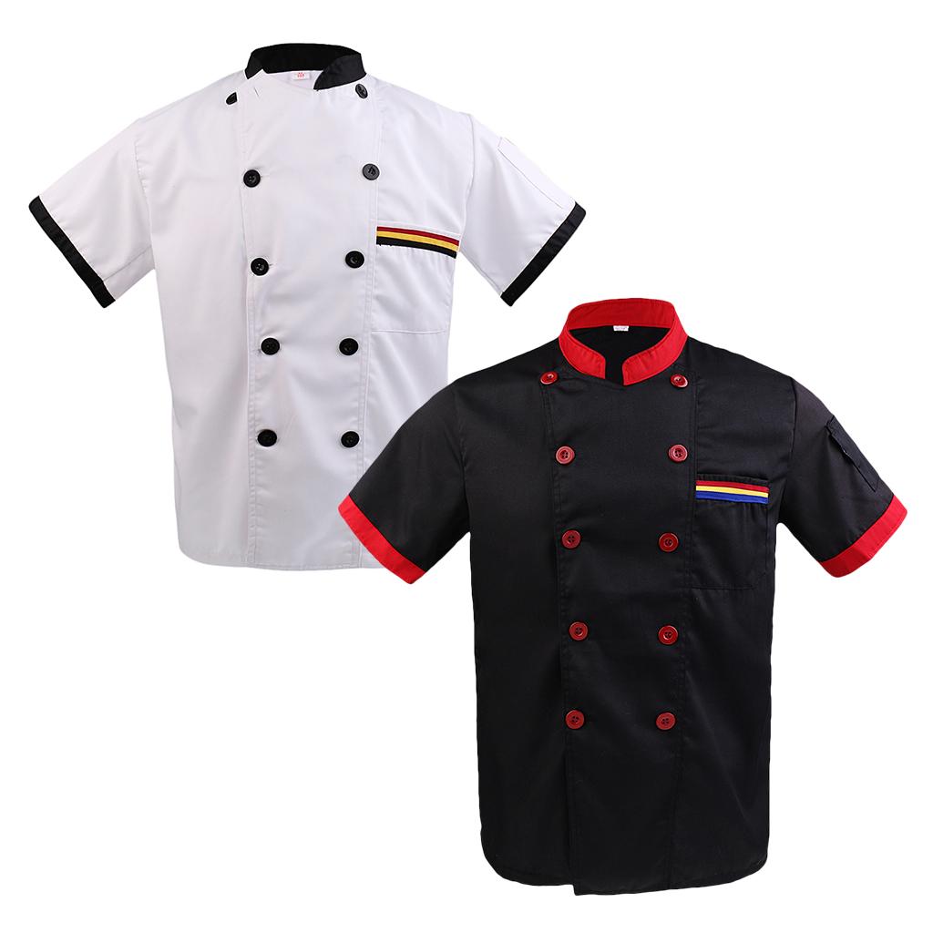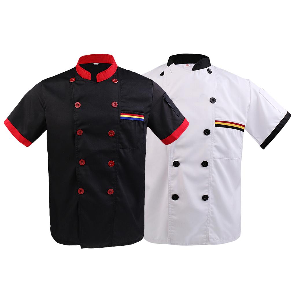 Men Women Chef Uniform Double Breasted Cook Jacket Coat Short Sleeve L White