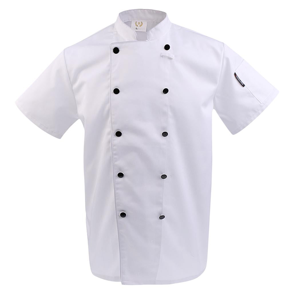 Unisex Double Breasted Short Sleeve Chef Jacket Coat Cook Hotel Uniform