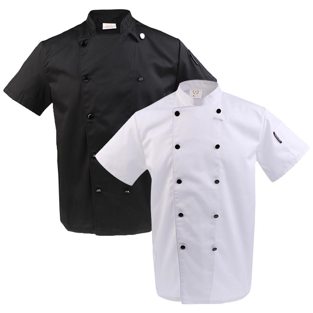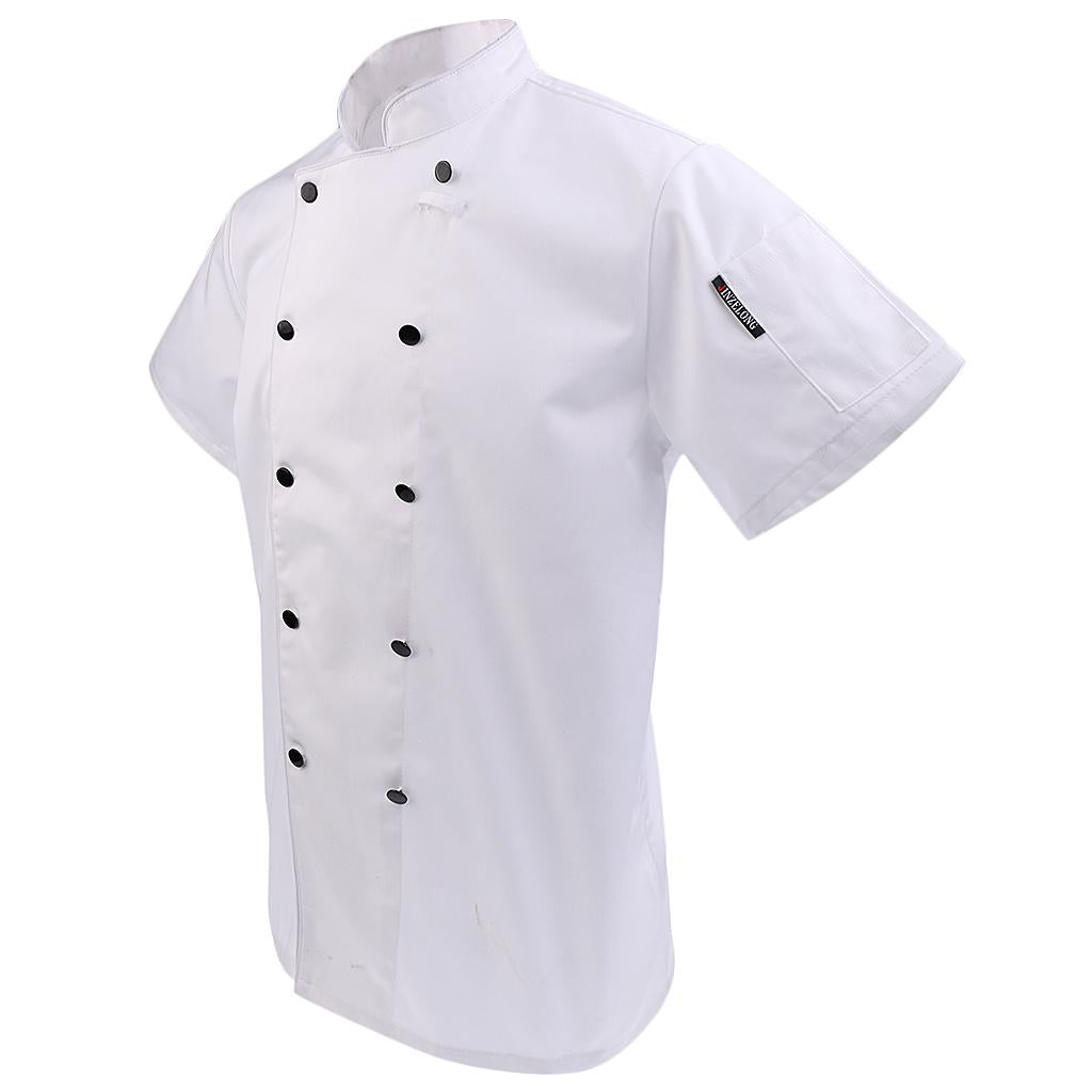 Unisex Double Breasted Short Sleeve Chef Jacket Coat Cook Hotel Uniform