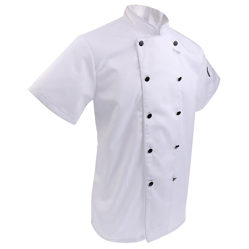 Unisex Double Breasted Short Sleeve Chef Jacket Coat Cook Hotel Uniform