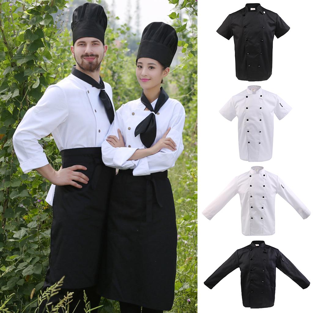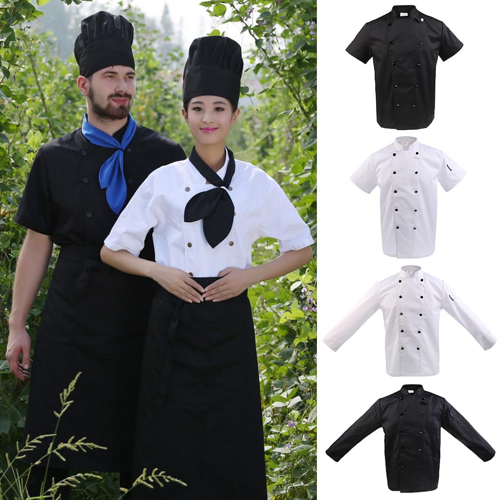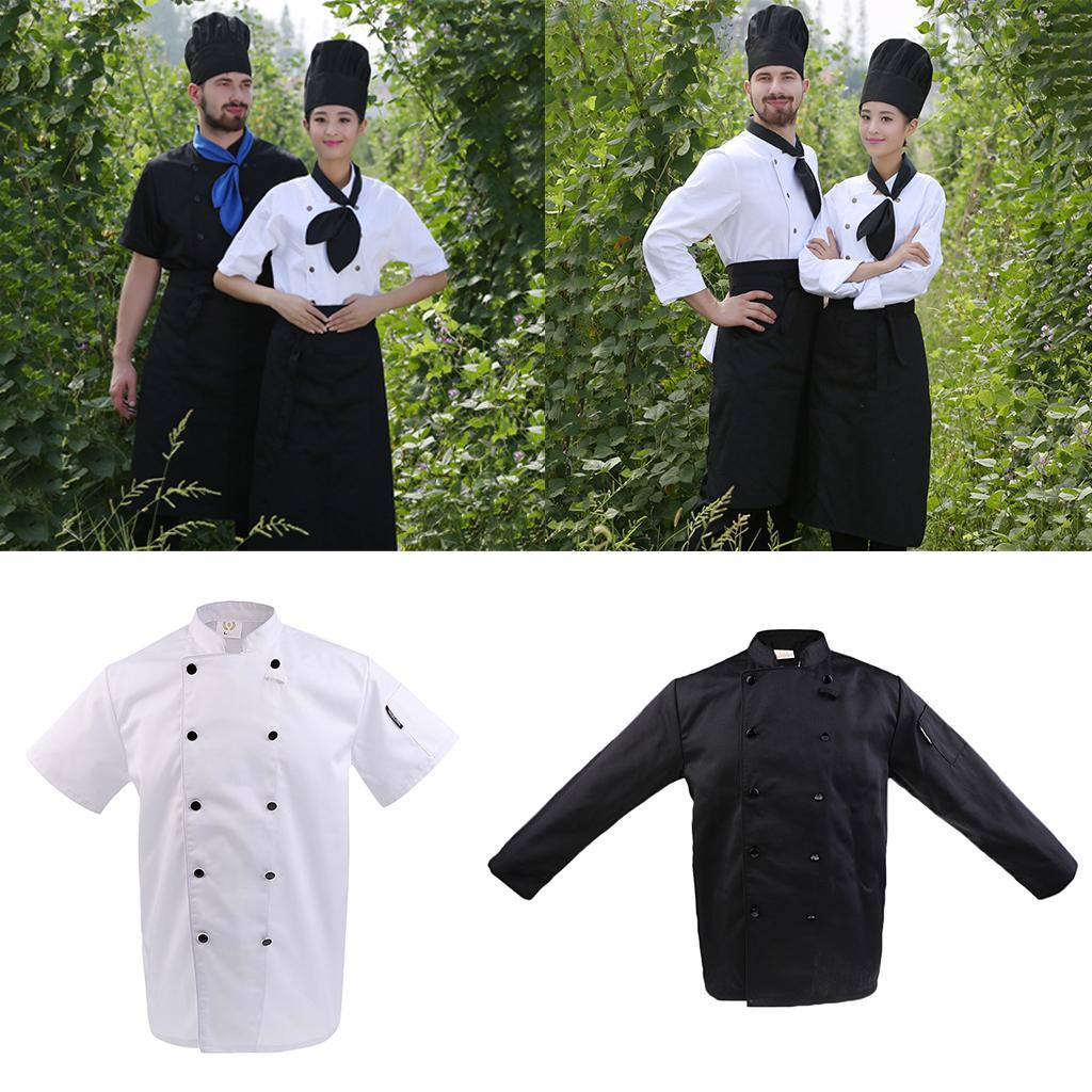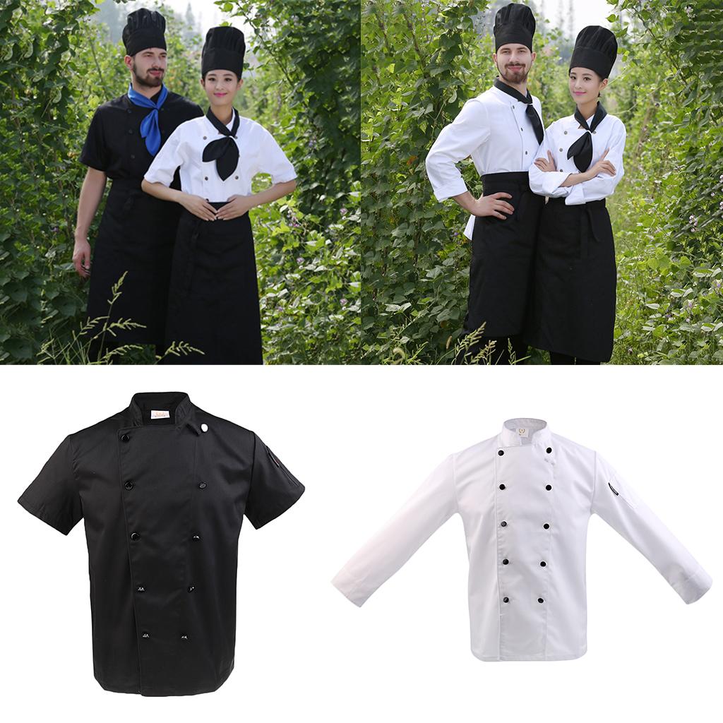 Unisex Double Breasted Short Sleeve Chef Jacket Coat Cook Hotel Uniform