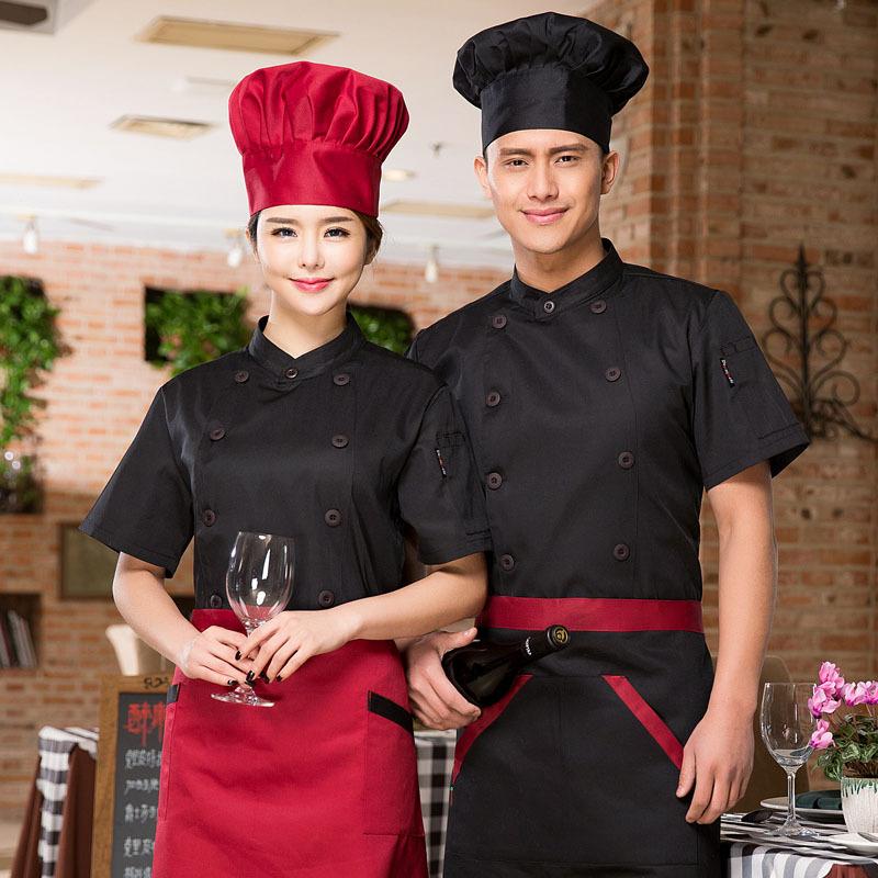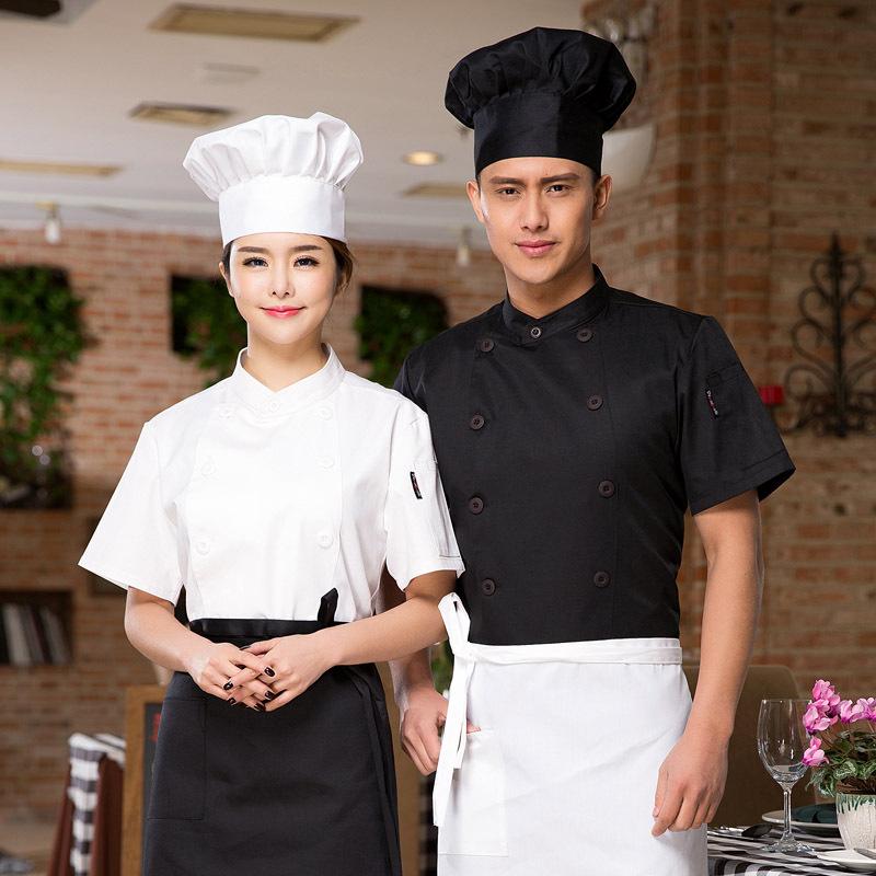 Mandarin collar short sleeve solid color chef coat uniform for men and women