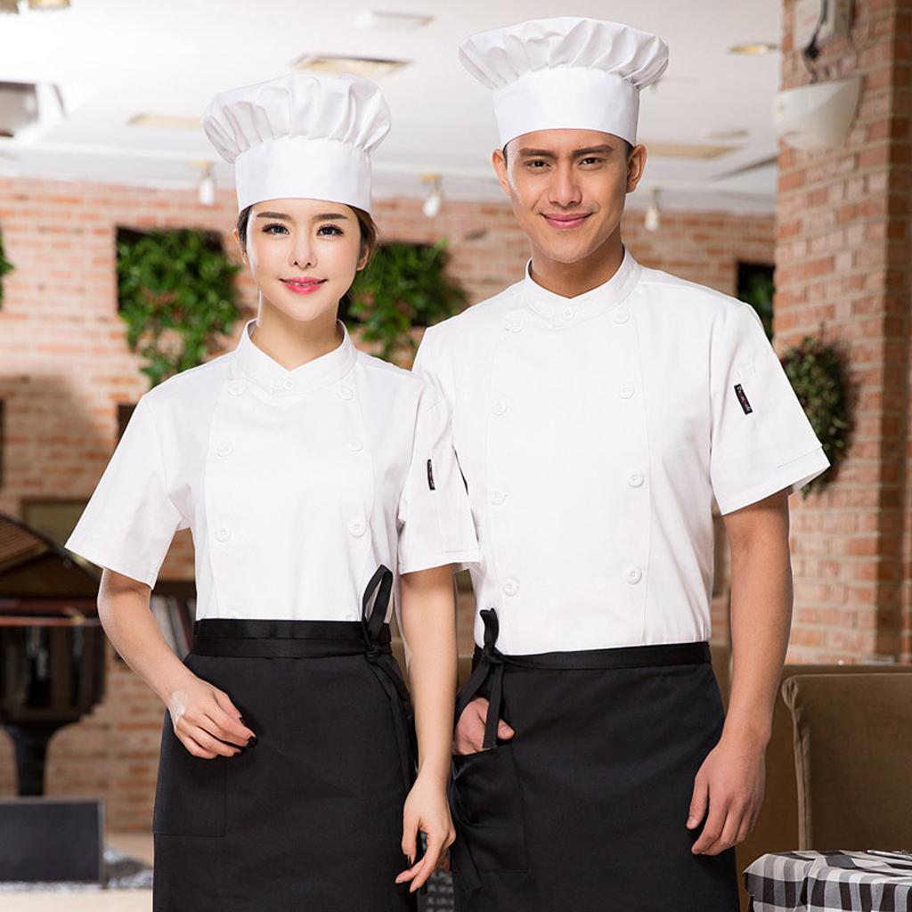 • Mandarin collar short sleeve solid color chef coat uniform for men and women