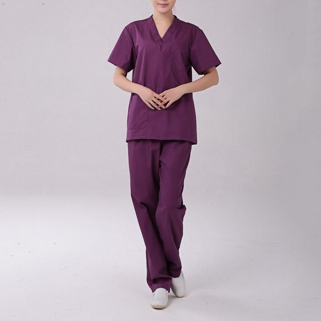 Men Women Medical Spa Nursing Clinic Scrub Sets Hospital Uniform L Purple