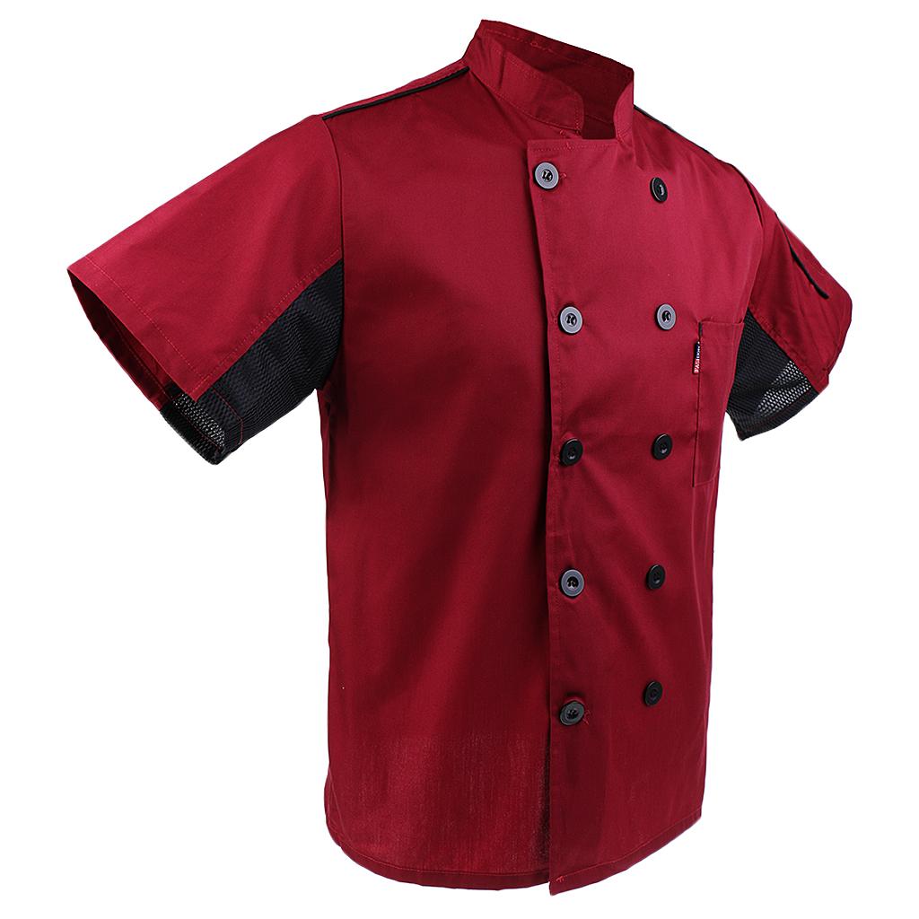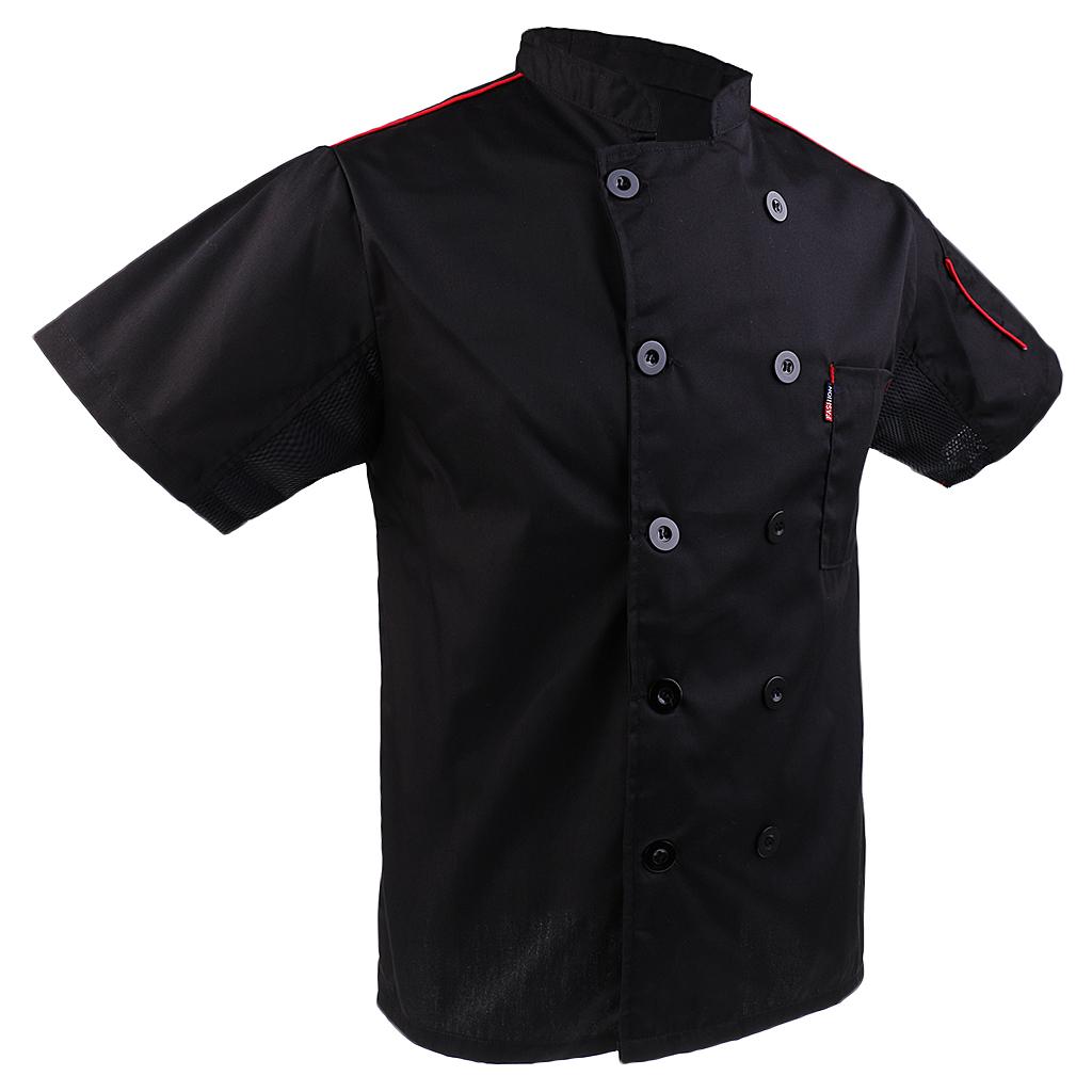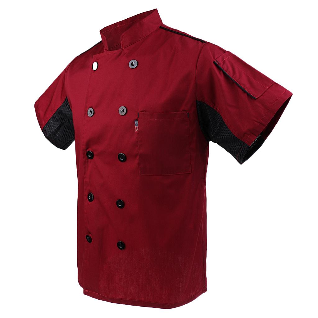 Simple and professional design, double-breasted, short sleeves, mandarin collar and having breast pocket on the left side
