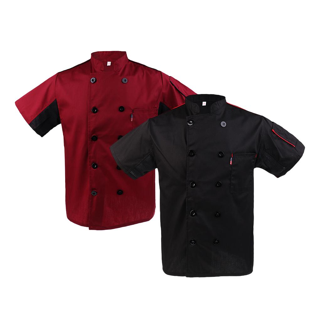 2 pieces of chef jackets, wine red and black tone