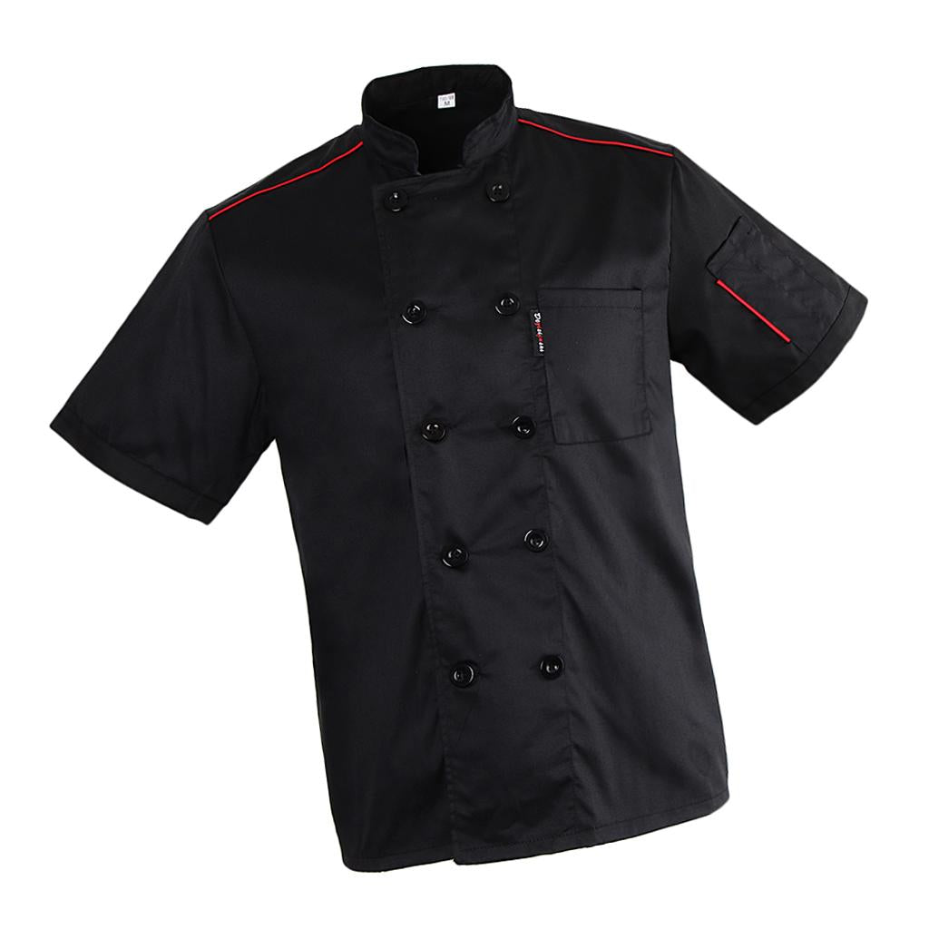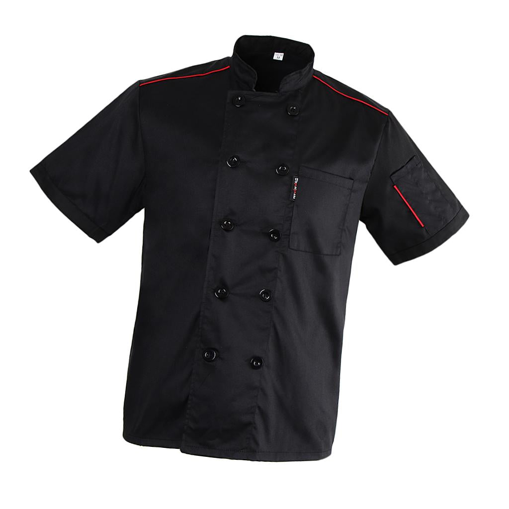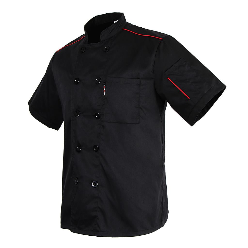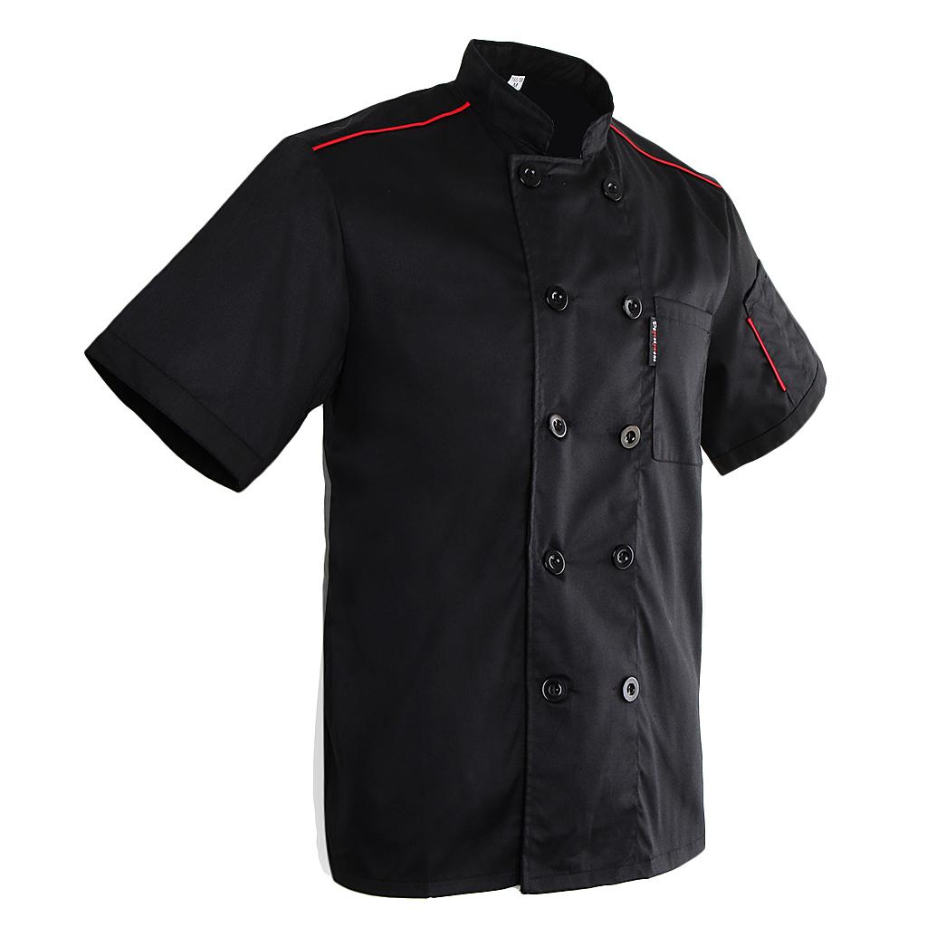 Unisex Adults Chef Jacket Coat Hotel Waiter Uniform Short Sleeves Black M