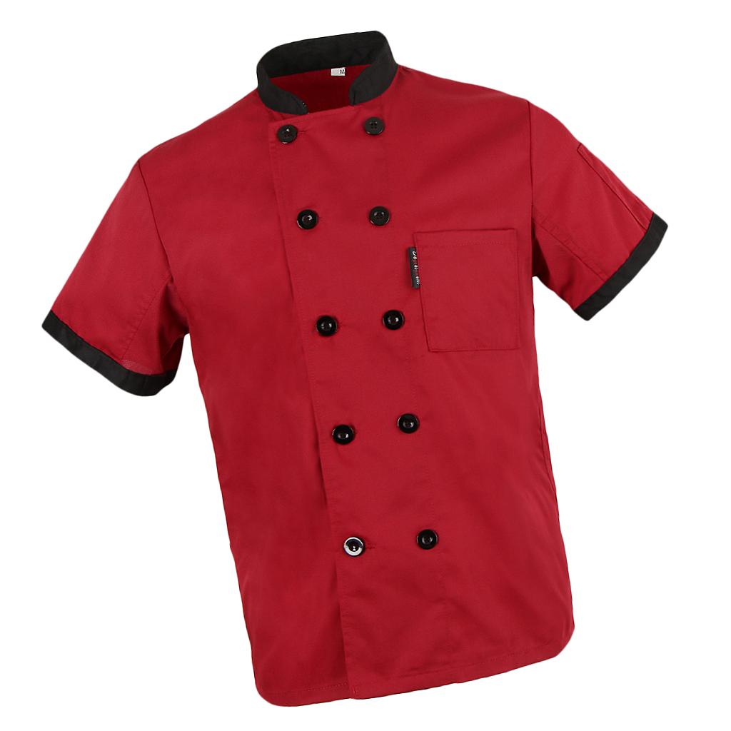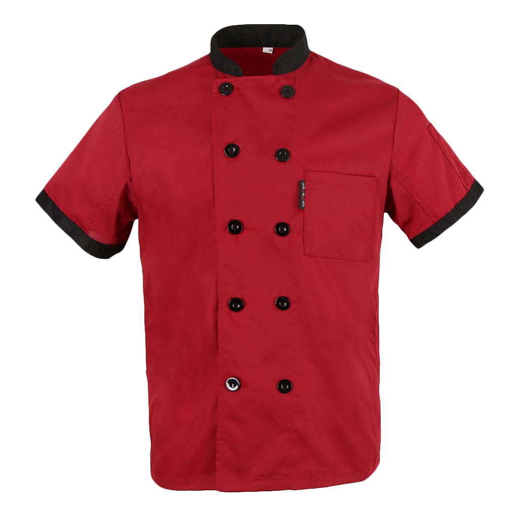 Unisex Chef Jacket Coat Kitchen Uniform Air Mesh Short Sleeves Red M