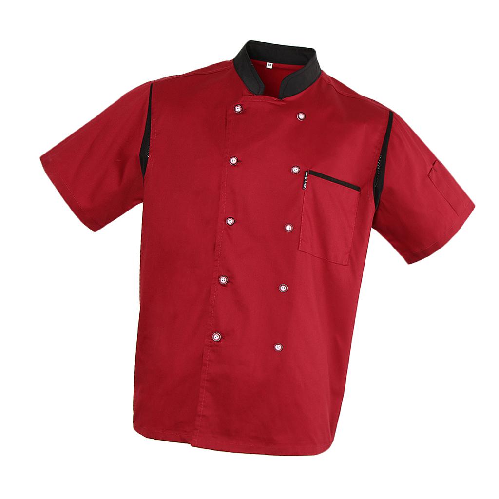 Unisex Chef Jacket Mesh Short Sleeves Hotel Kitchen Chefwear Coat 2XL Red