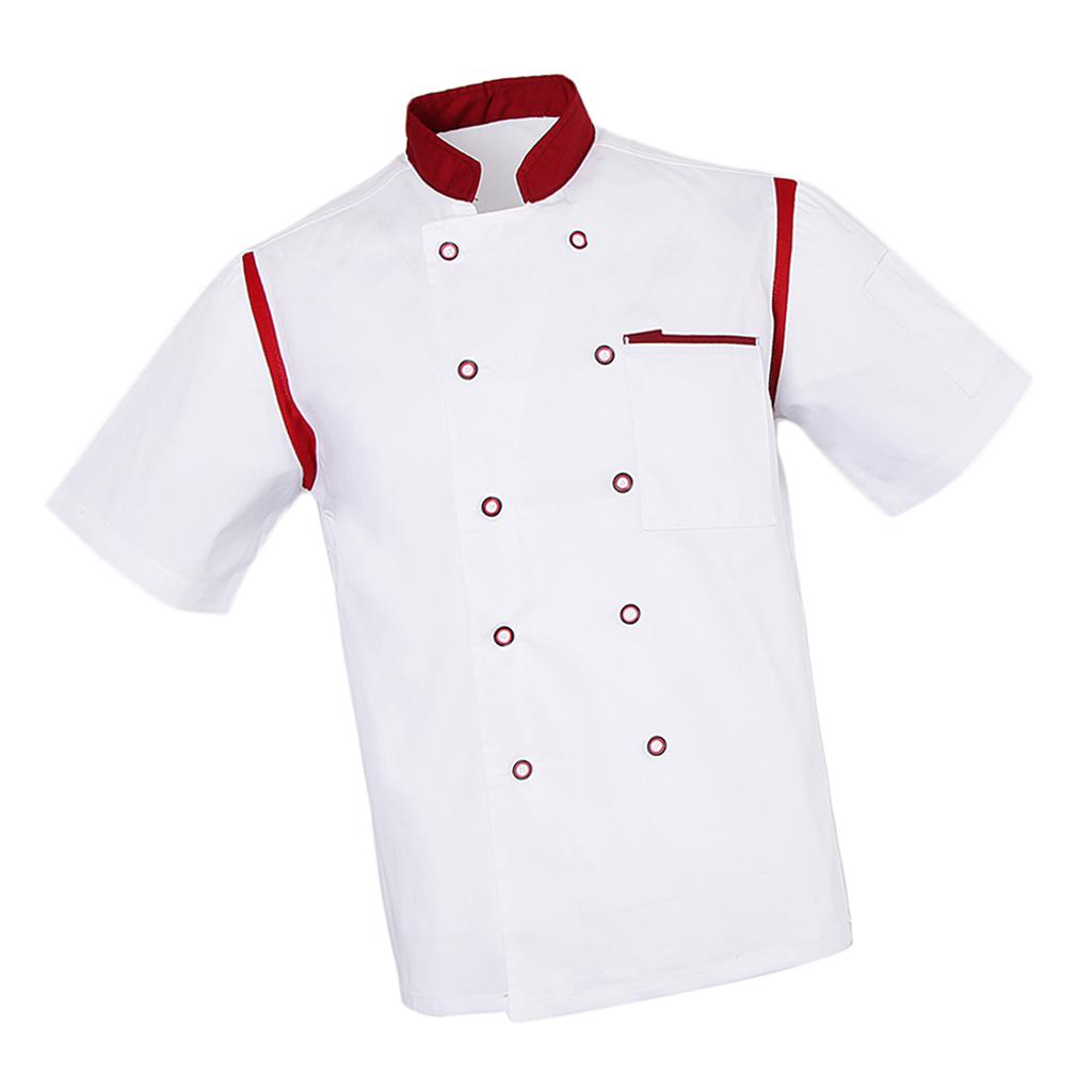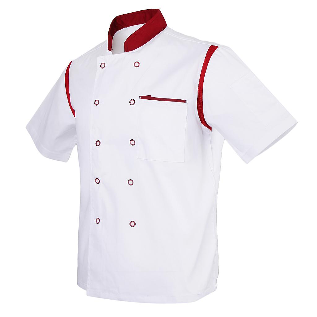 Unisex Chef Jacket Mesh Short Sleeves Hotel Kitchen Chefwear Coat Red 2XL