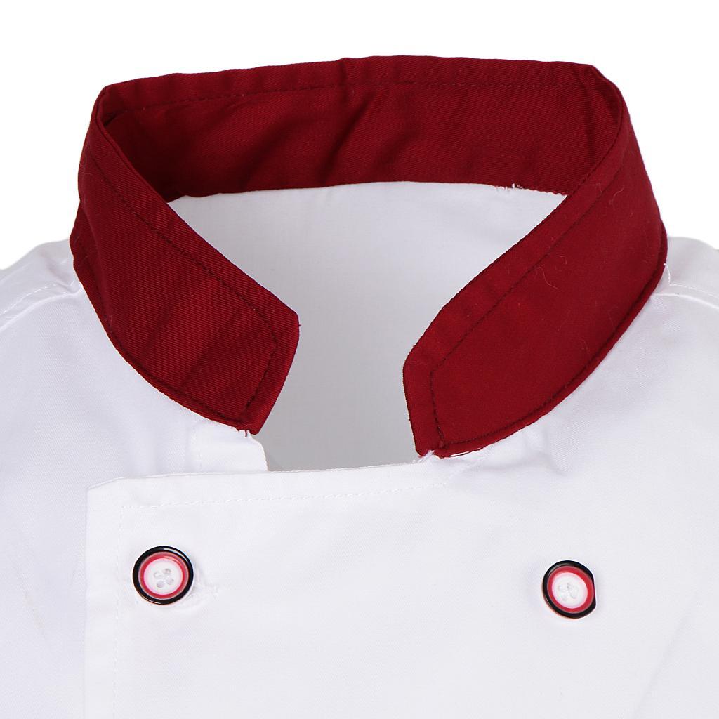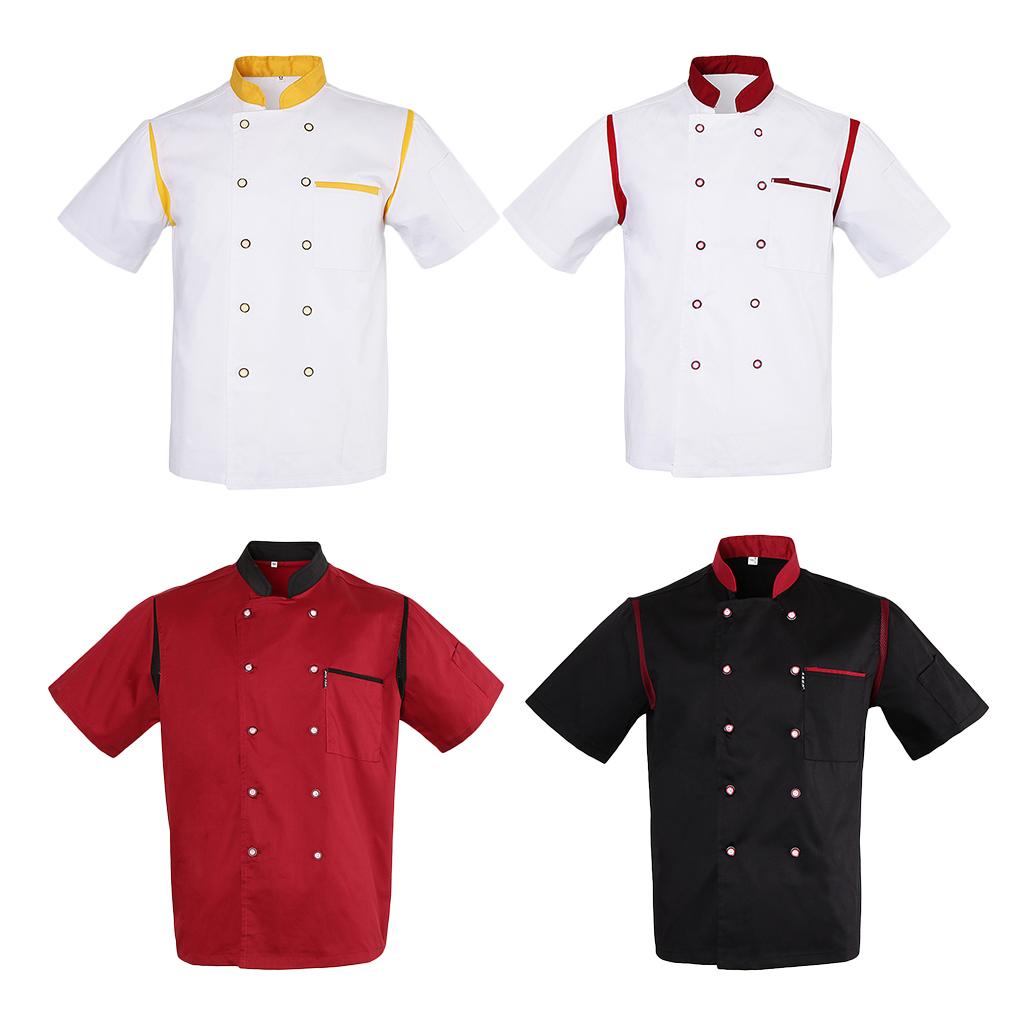 Unisex Chef Jacket Mesh Short Sleeves Hotel Kitchen Chefwear Coat Red L