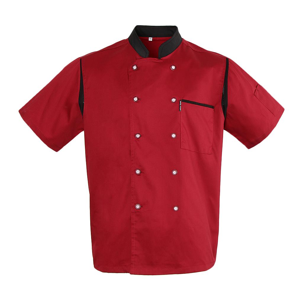Unisex Chef Jacket Mesh Short Sleeves Hotel Kitchen Chefwear Coat XL Red