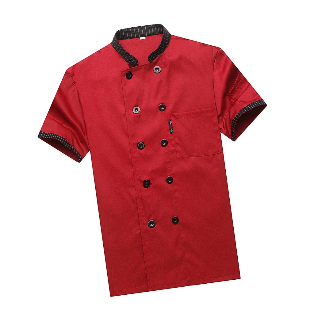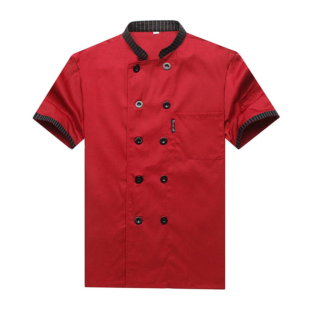 Unisex Chef Jacket Stripe Short Sleeve Hotel Kitchen Chefwear Coat L Red