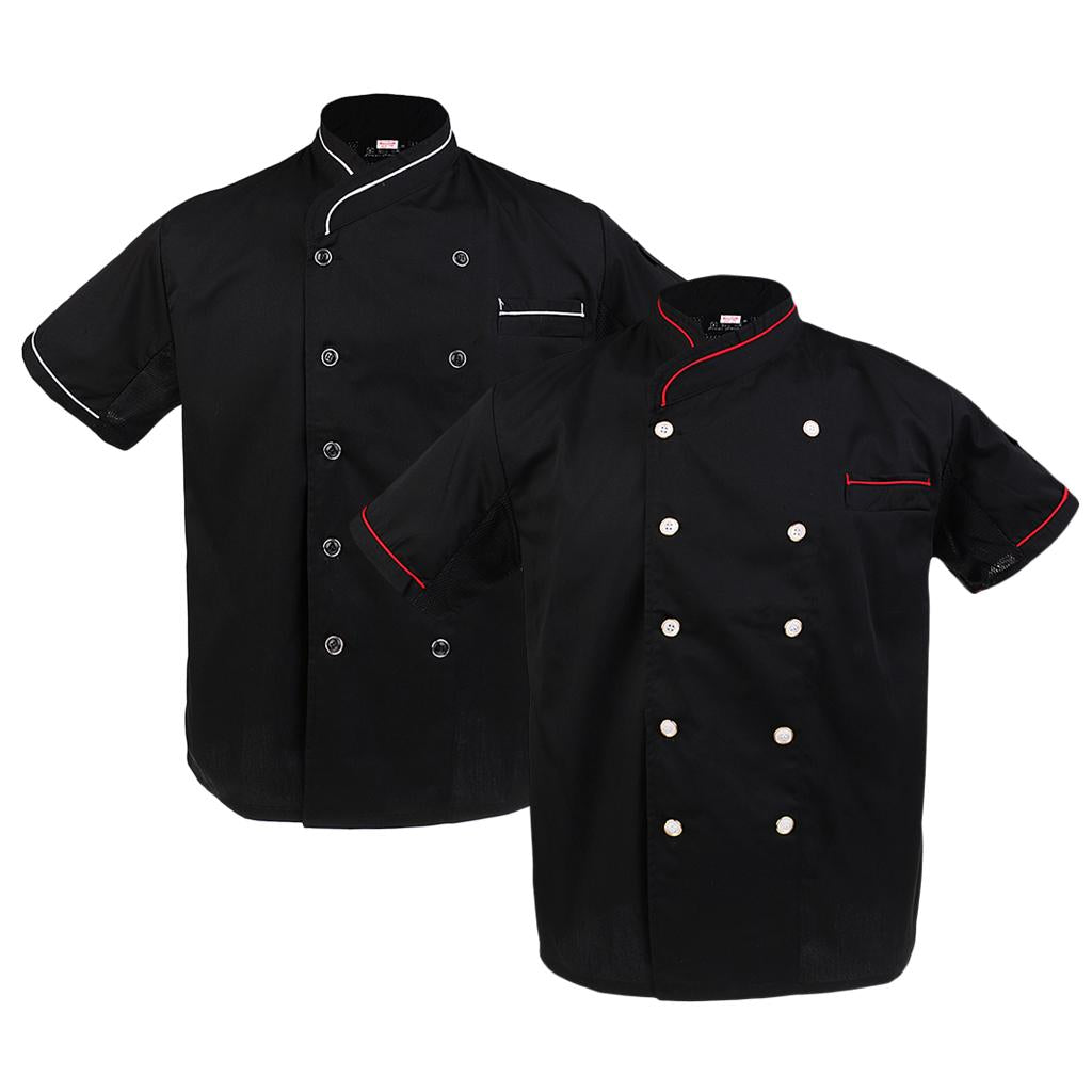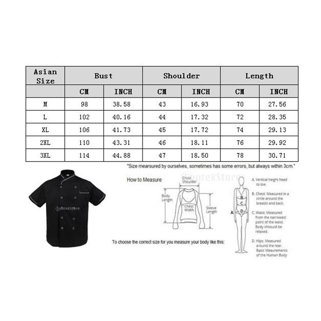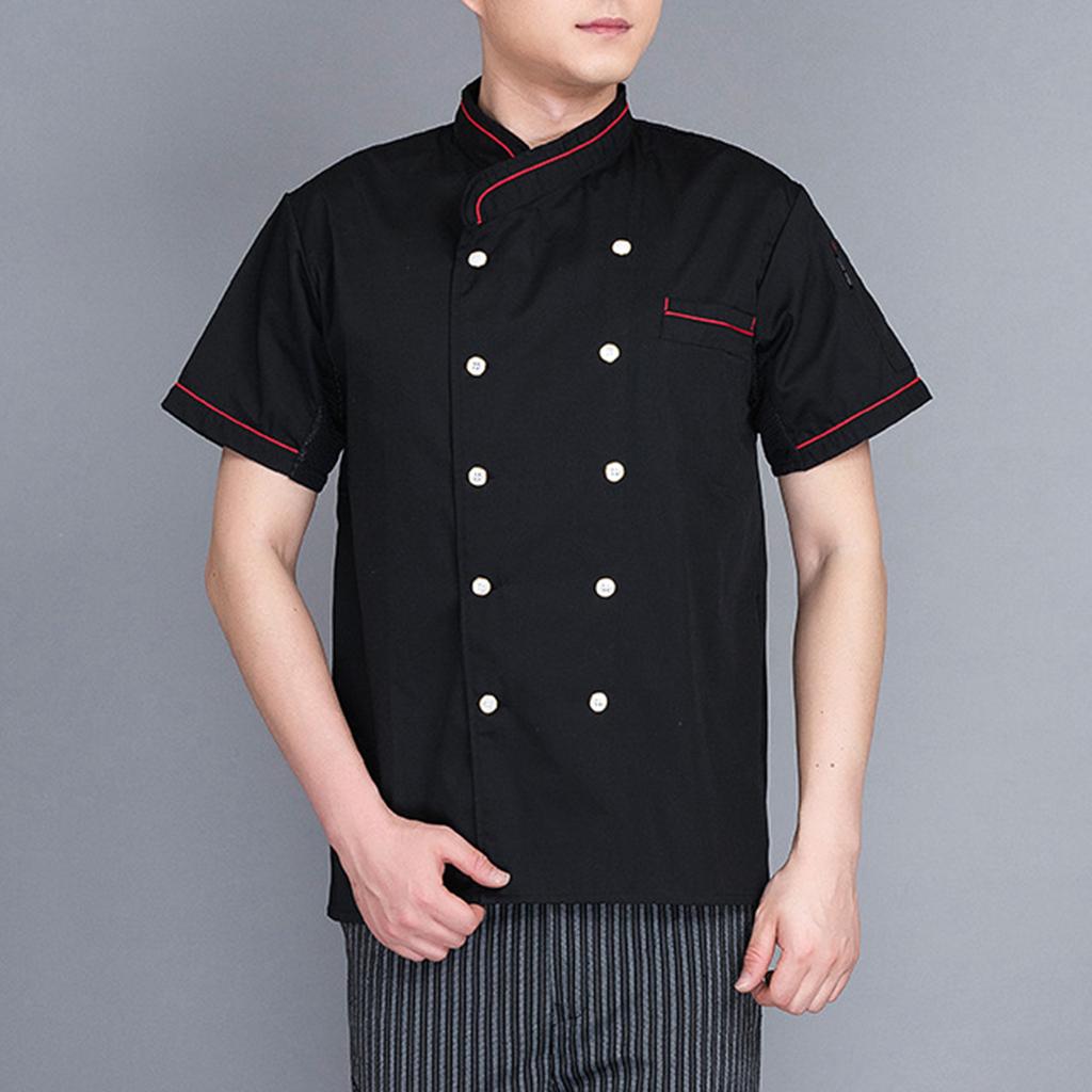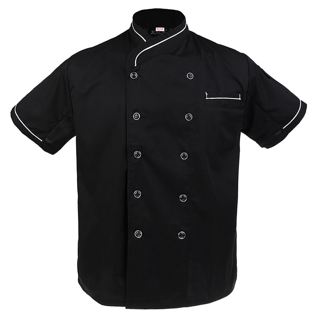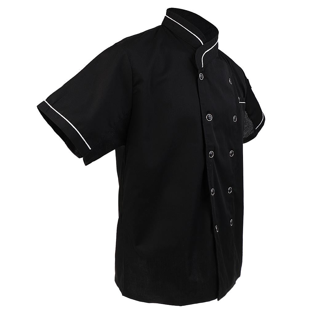 Unisex Double Breasted Short Sleeve Chef Jacket Coat Cook Hotel Uniform