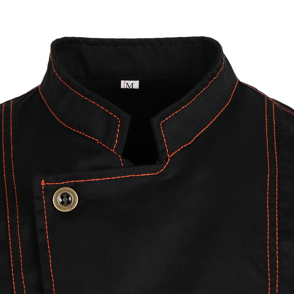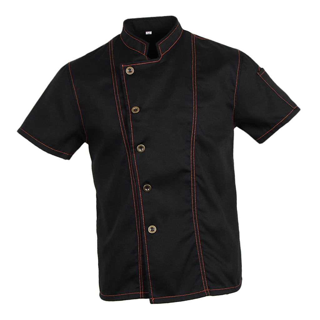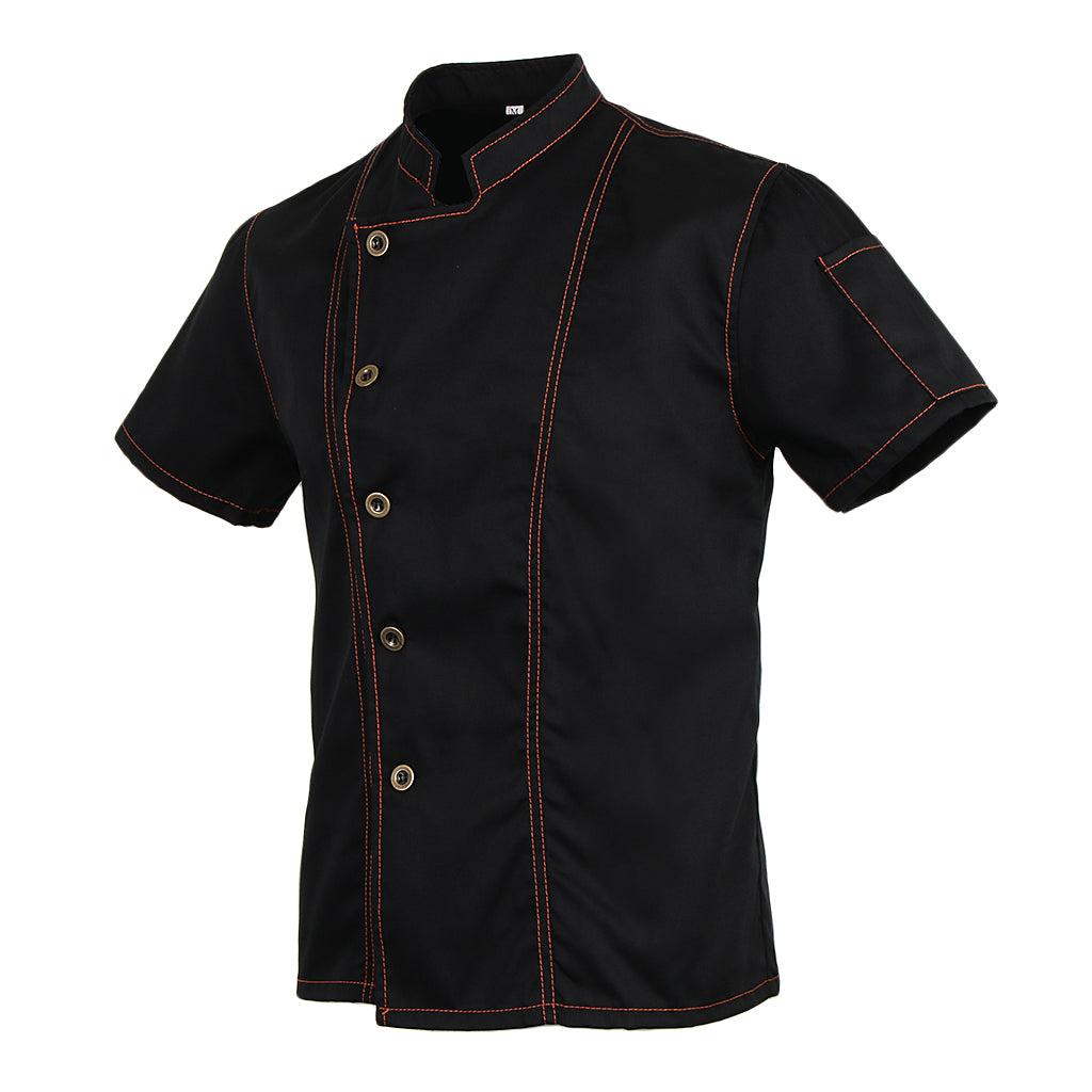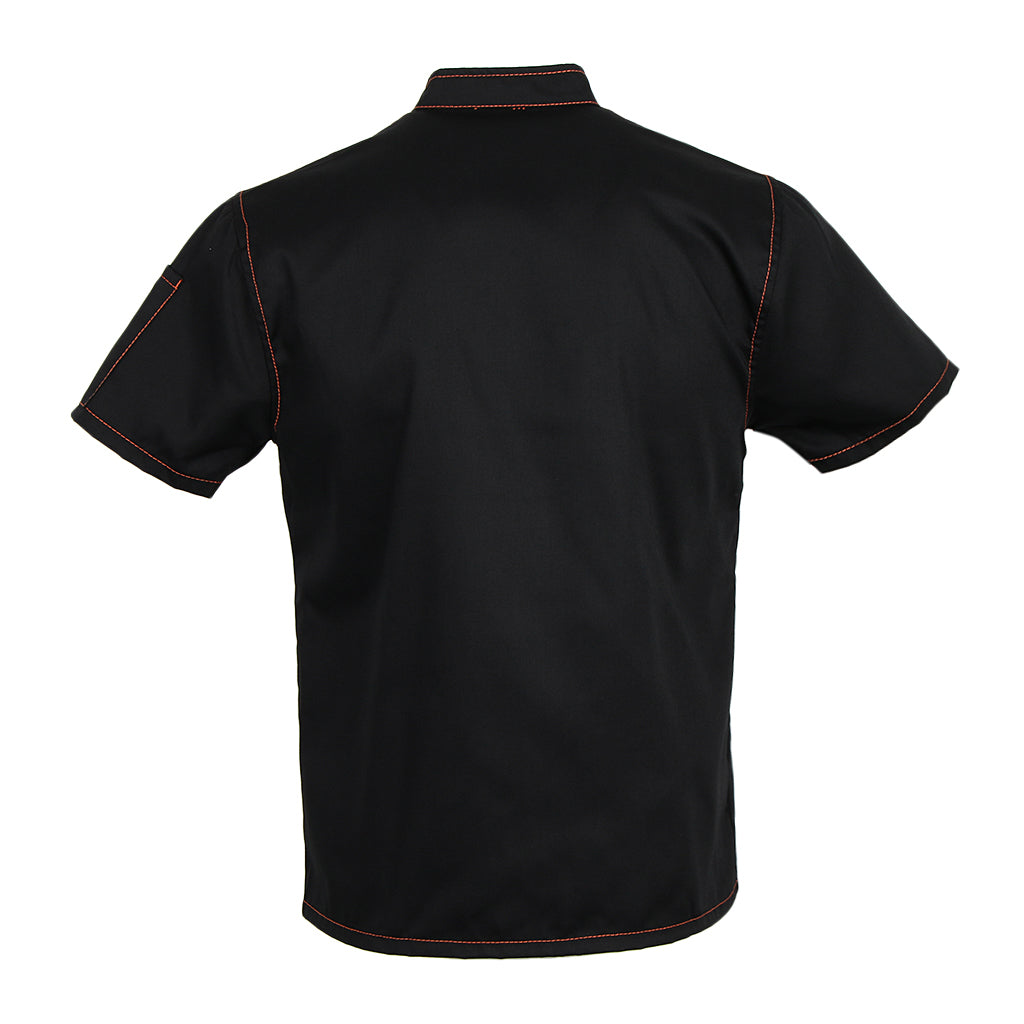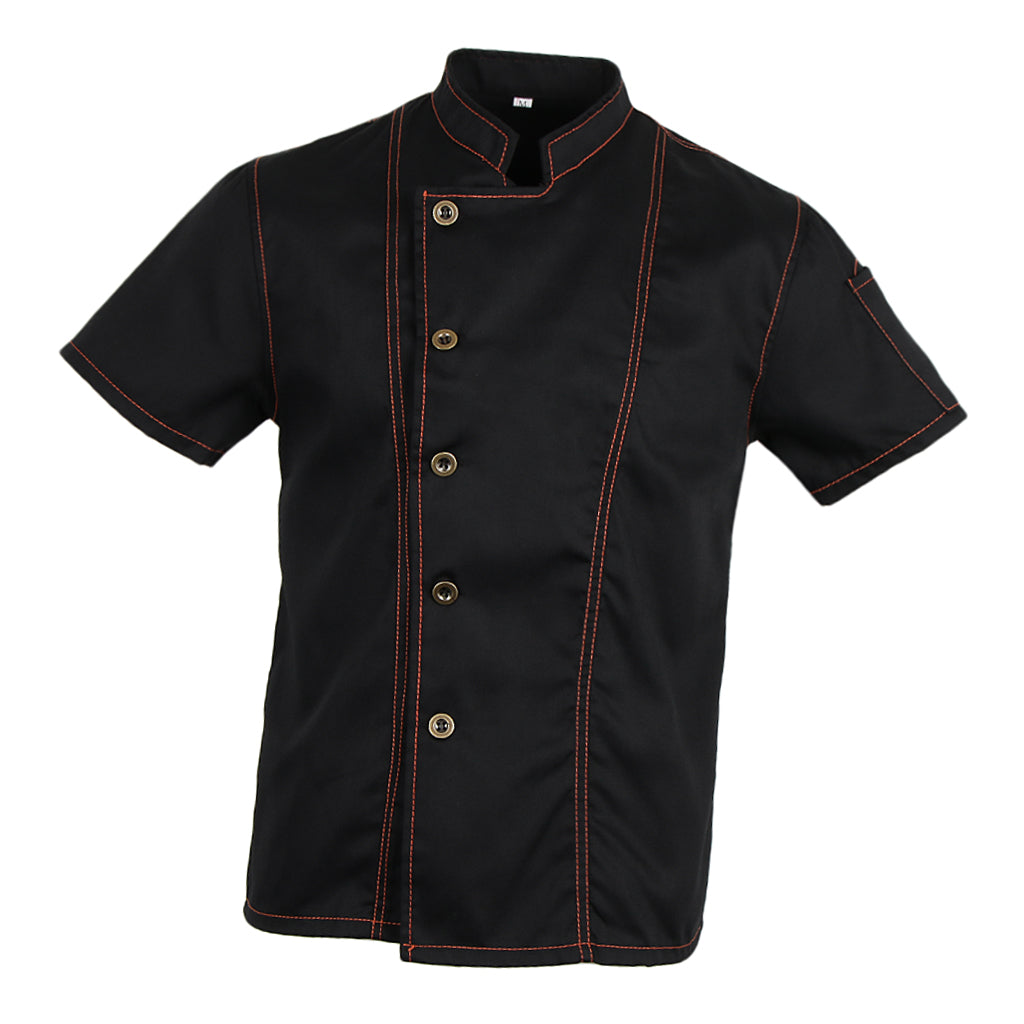 Unisex Denim Chef Jacket Coat Short Sleeves Shirt Kitchen Uniform Black 2XL