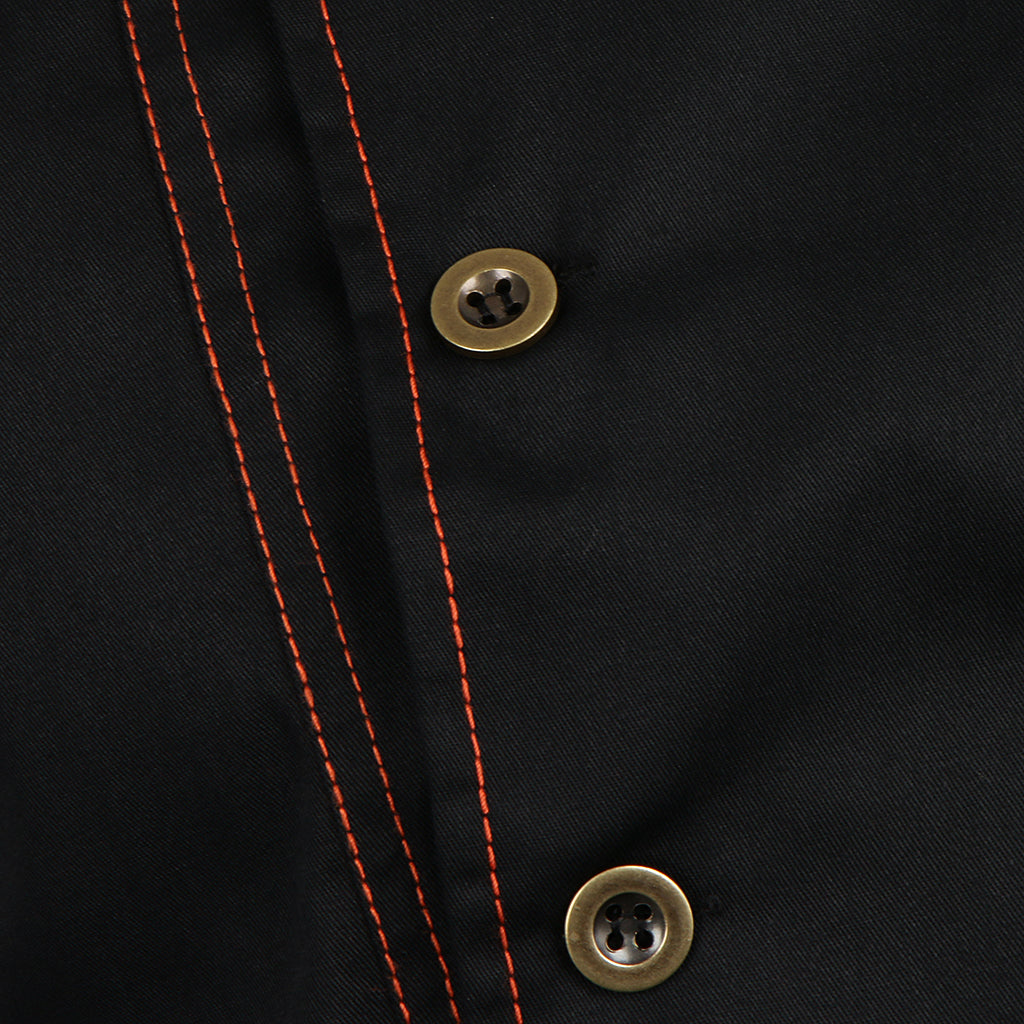 Single-breasted, short sleeves, having mandarin collar and pocket on the left shoulder, solid color