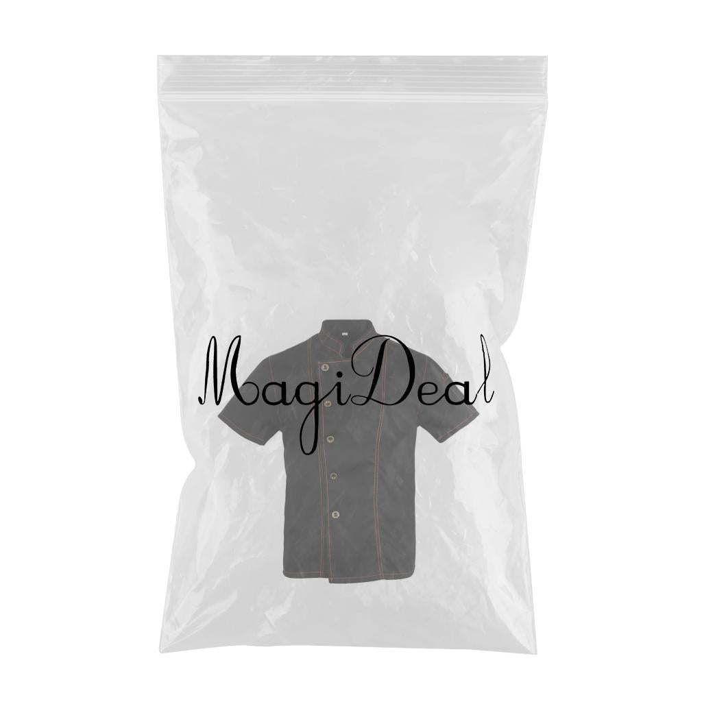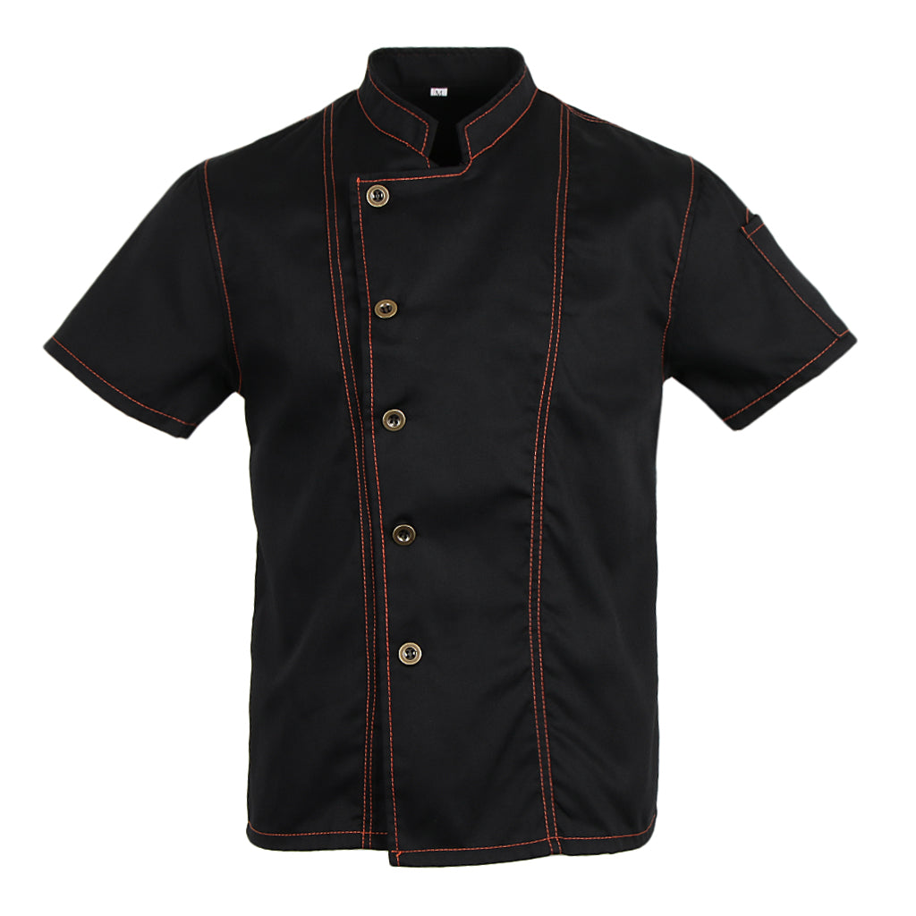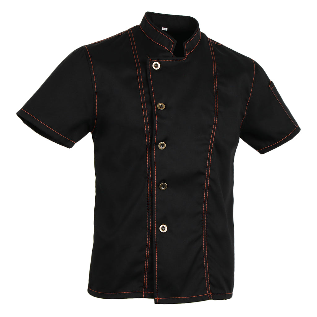 Unisex Denim Chef Jacket Coat Short Sleeves Shirt Kitchen Uniform Black M