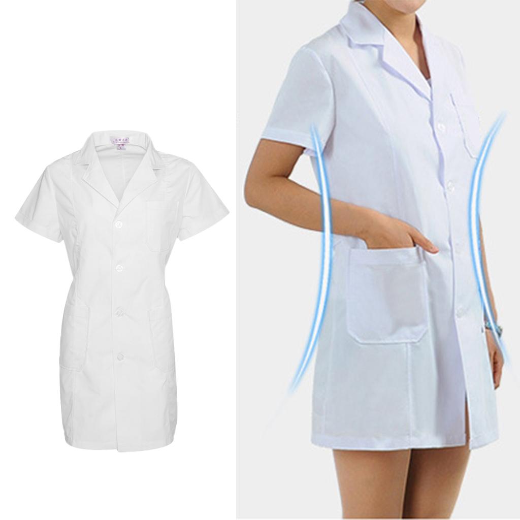 Unisex White Scrubs Lab Coat Doctor Nurse Doctor Uniform Lapel Neck.