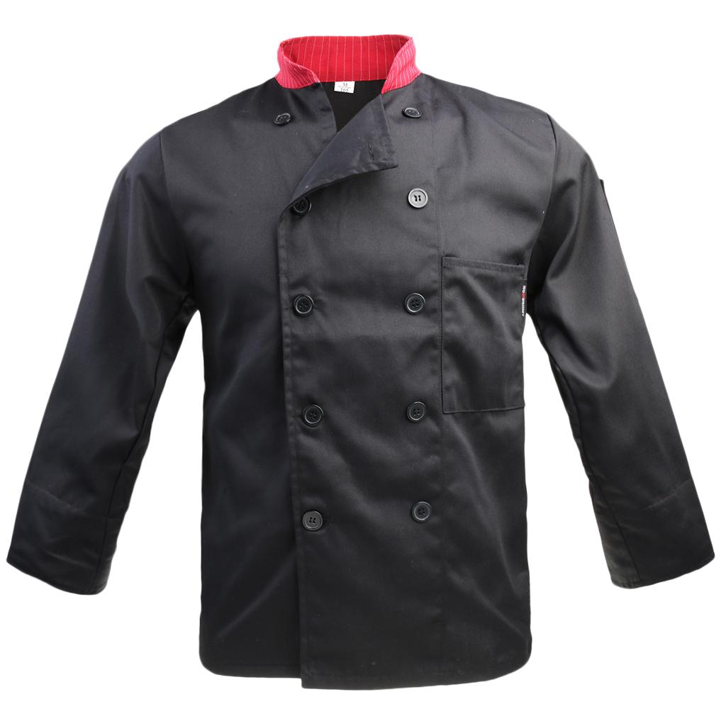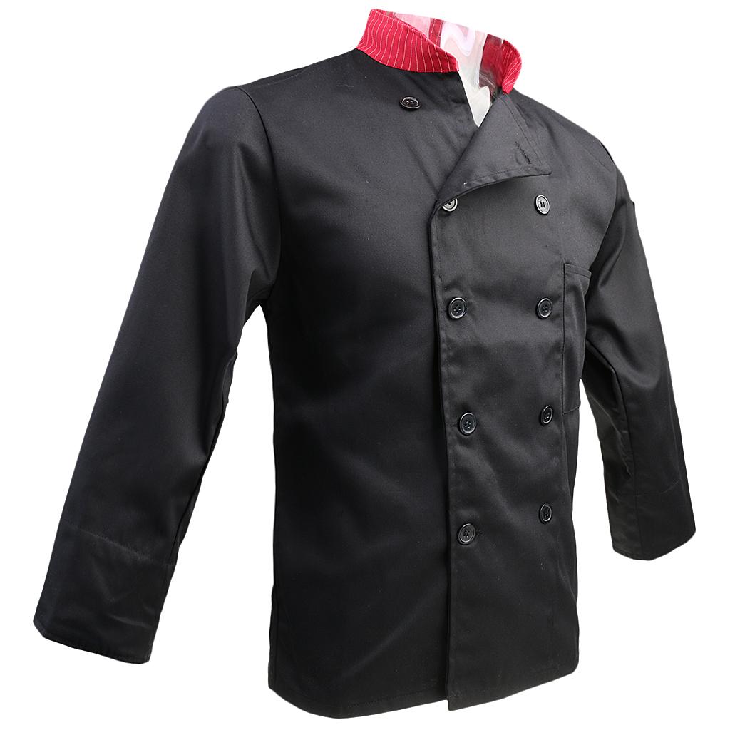 Unisex Stand Collar Double Breasted Long Sleeve Chef Jacket Coat L Black