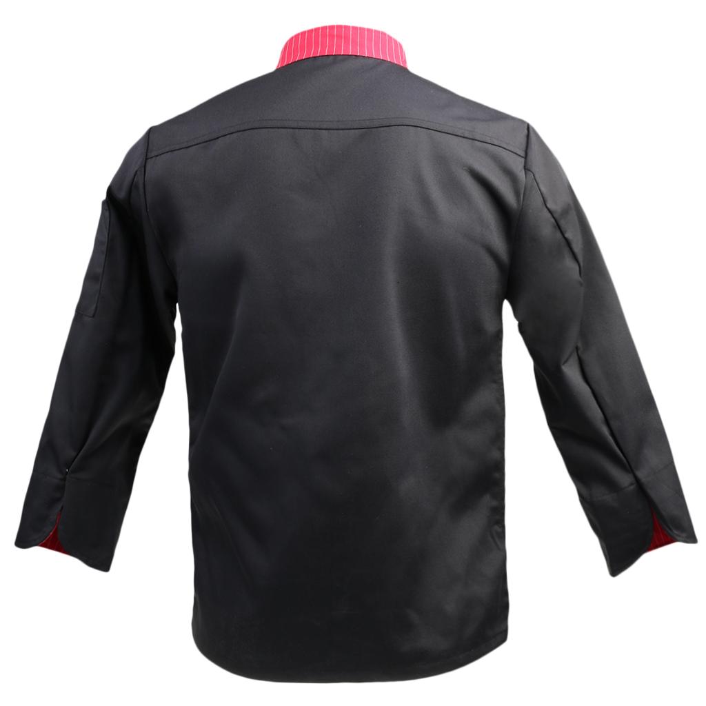 Unisex Stand Collar Double Breasted Long Sleeve Chef Jacket Coat XL Black
