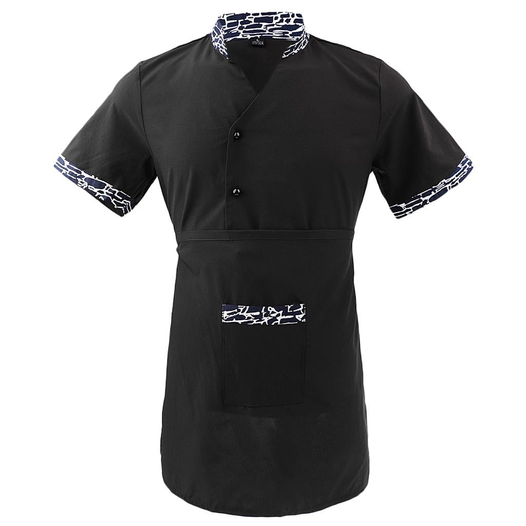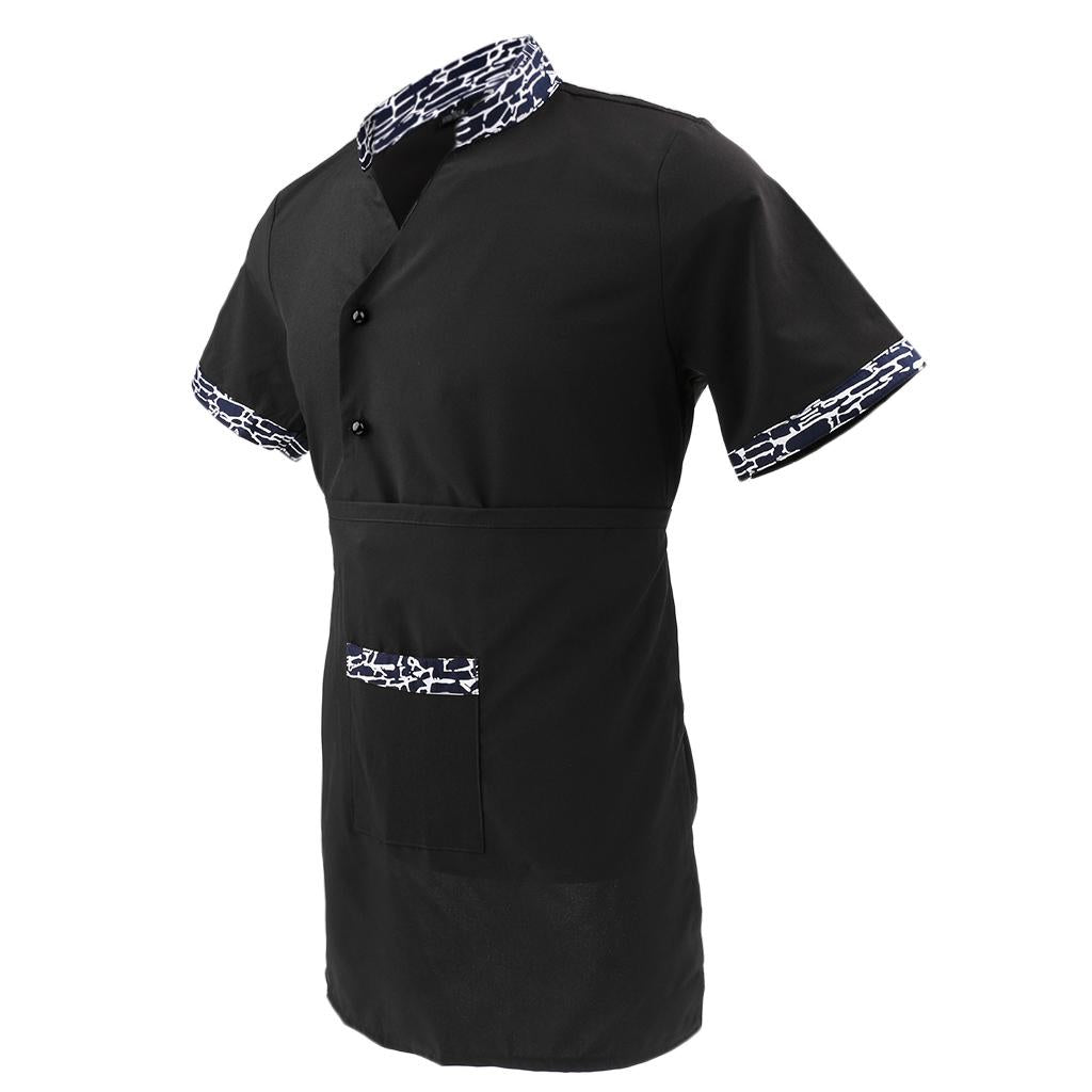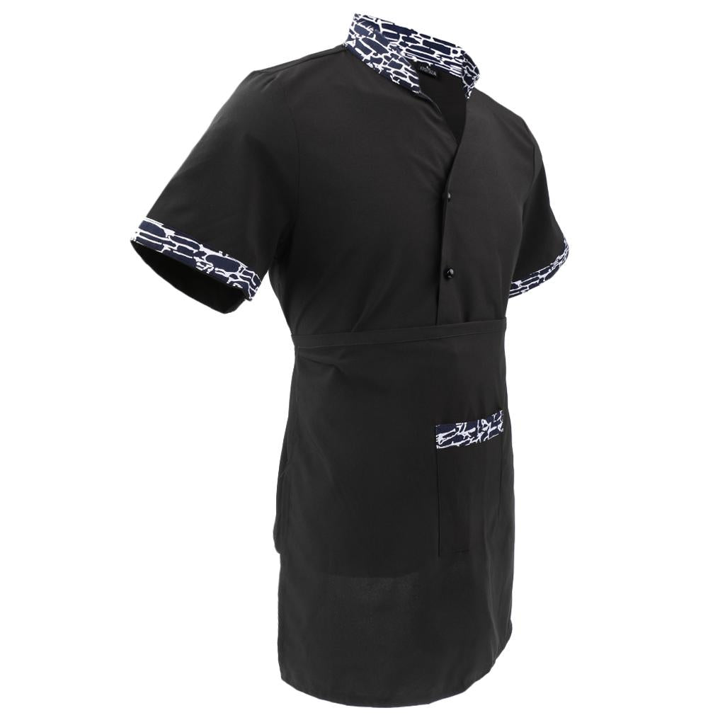 Waiter/Waitress Workwear Restaurant Uniform Hotel Working Tops with Apron Men-3XL Black