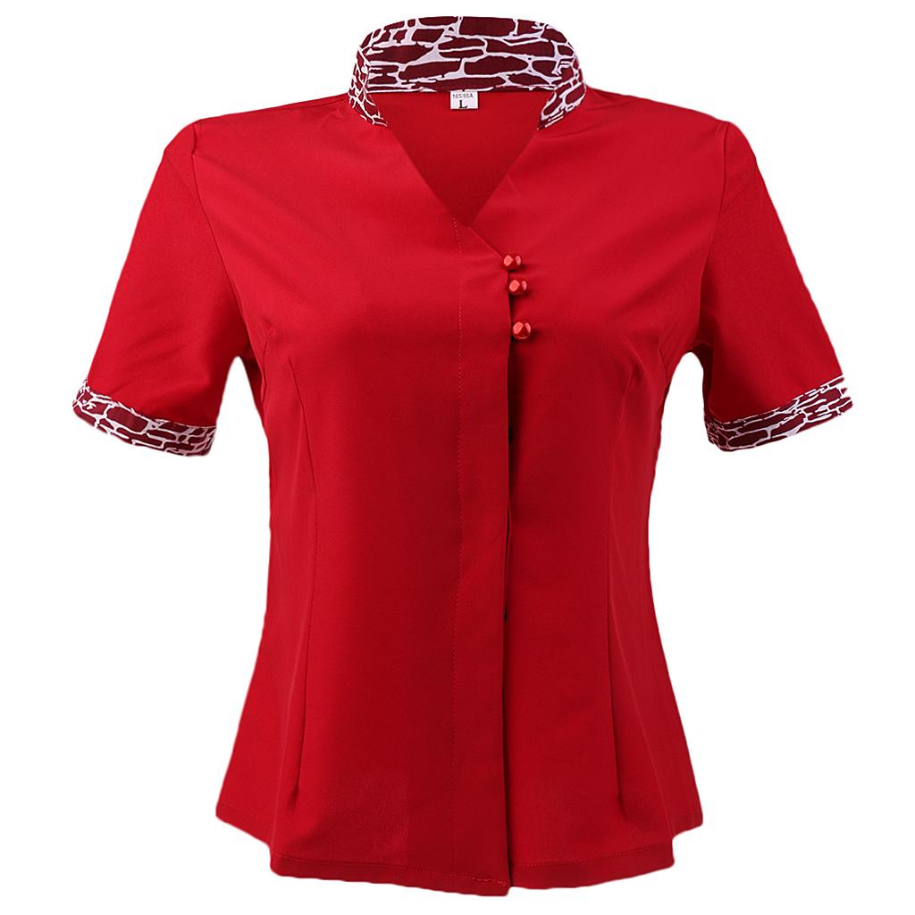 Waiter/Waitress Workwear Restaurant Uniform Hotel Working Tops with Apron Women-L Red