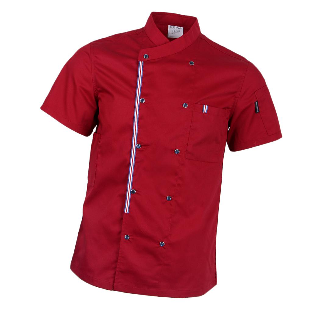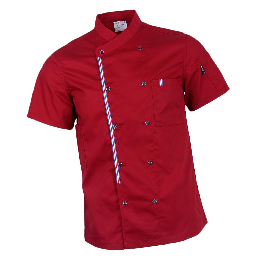 Women Men Chef Jackets Coat Short Sleeves Shirt Kitchen Uniforms 2XL Red