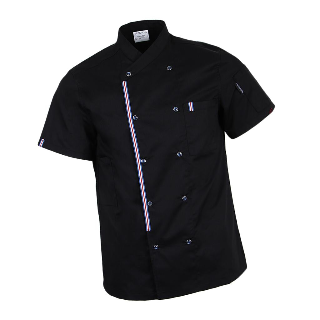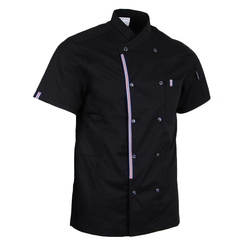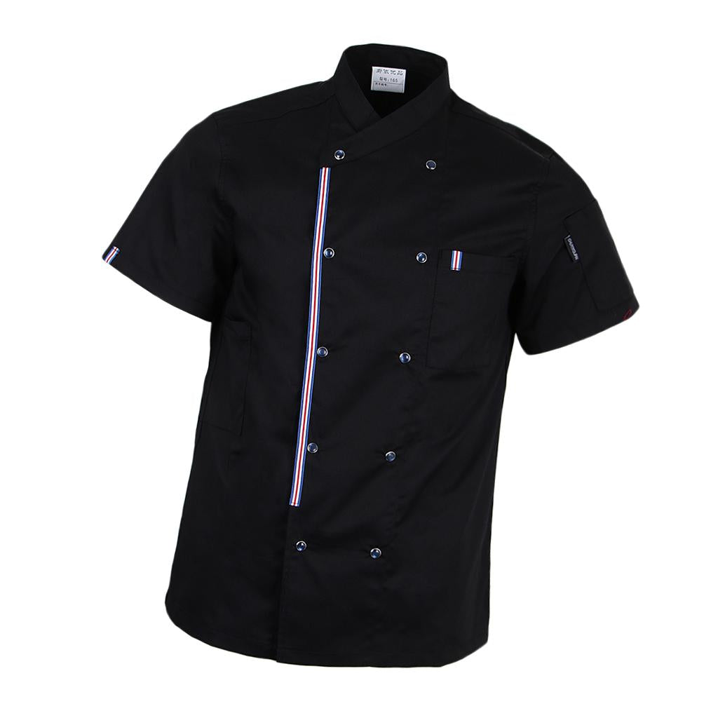 Women Men Chef Jackets Coat Short Sleeves Shirt Kitchen Uniforms XL Black