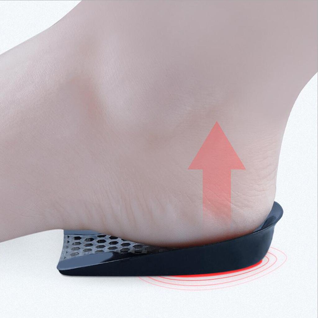 Shock absorbing gel reduces friction and pressure on heels and arch of foot