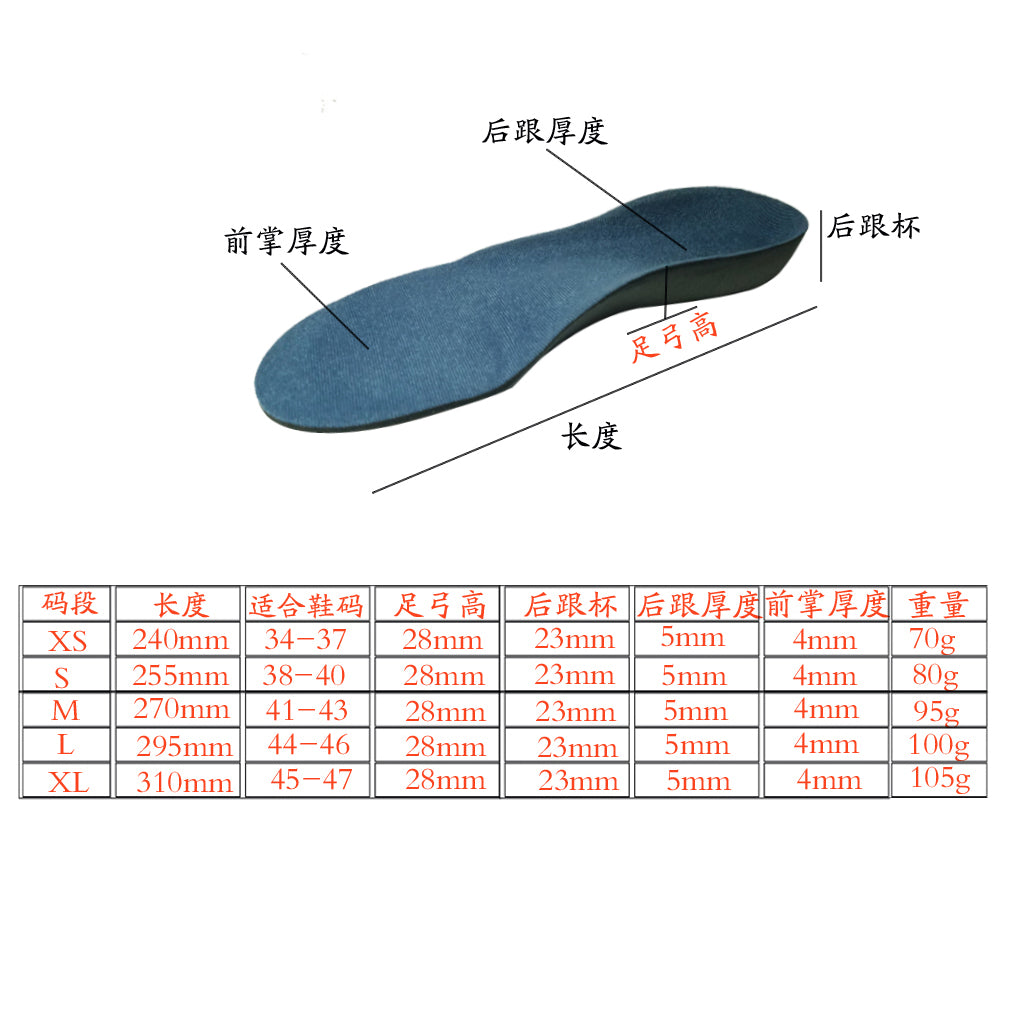 5 sizes for correct arch placement for better overall fit, comfort and performance
