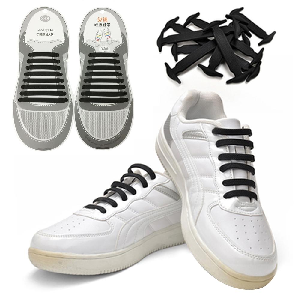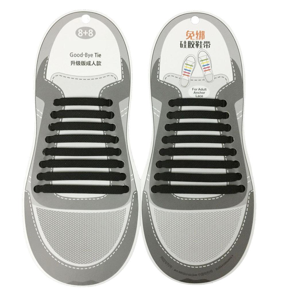 Pair No Tie Elastic Silicone Shoelaces Black Plus size