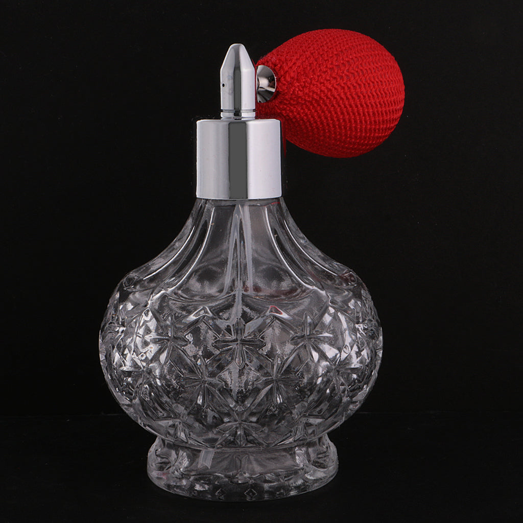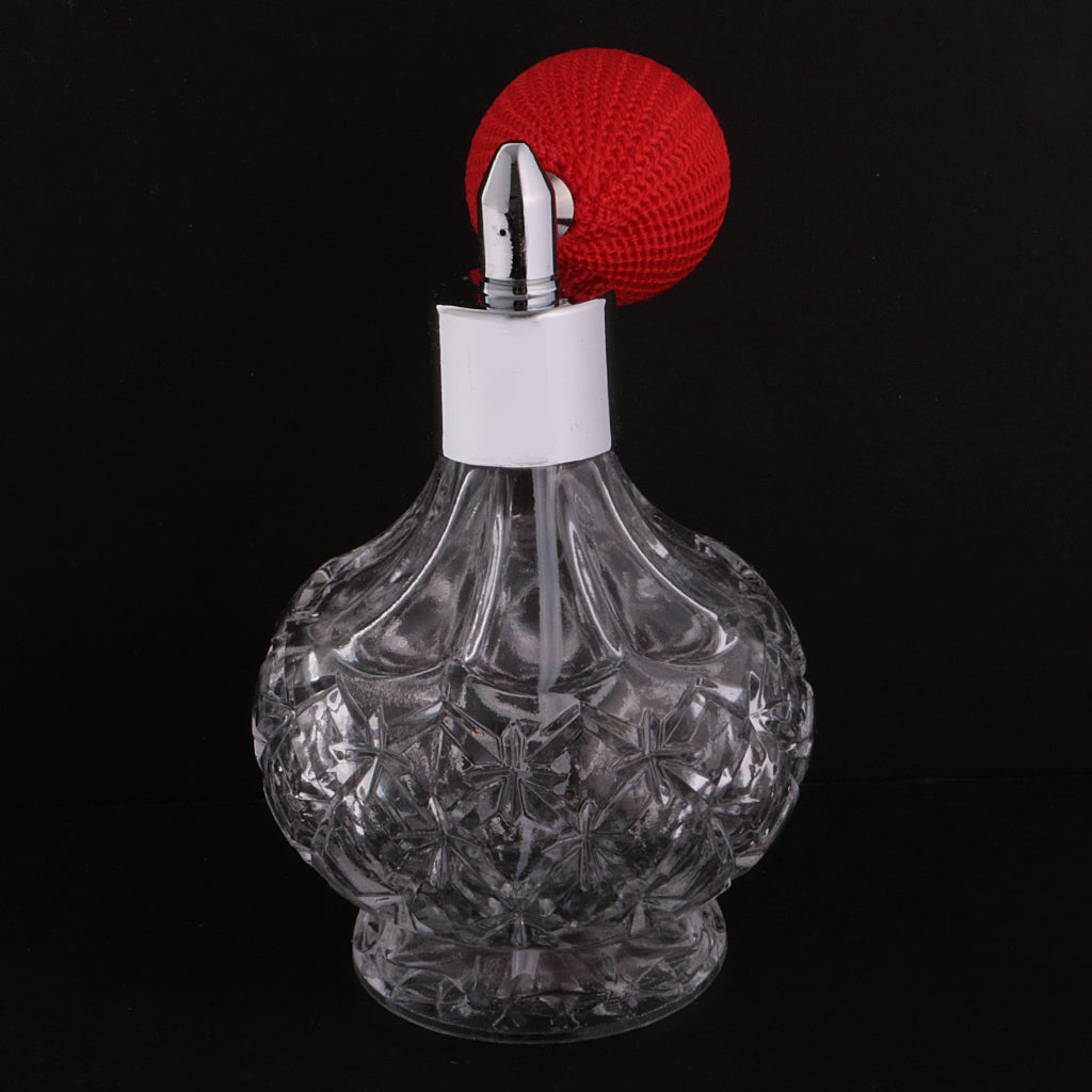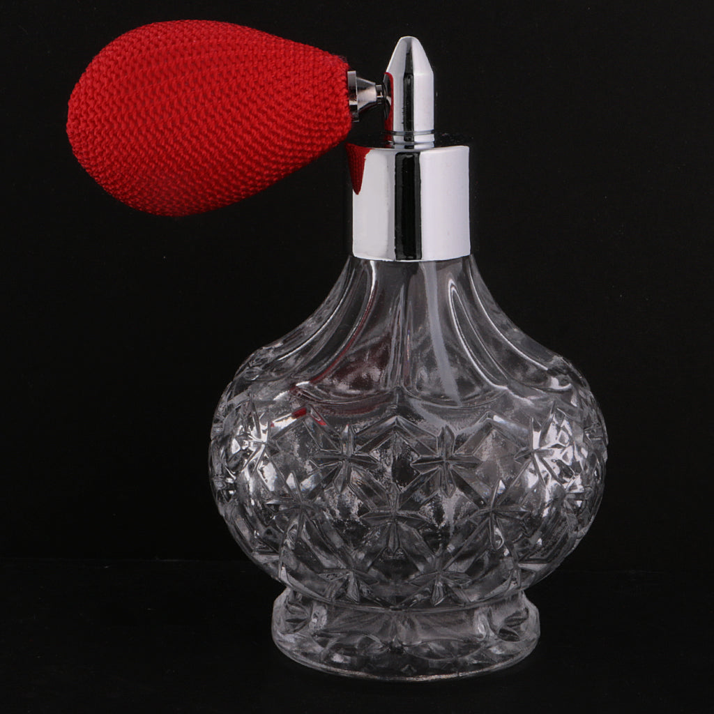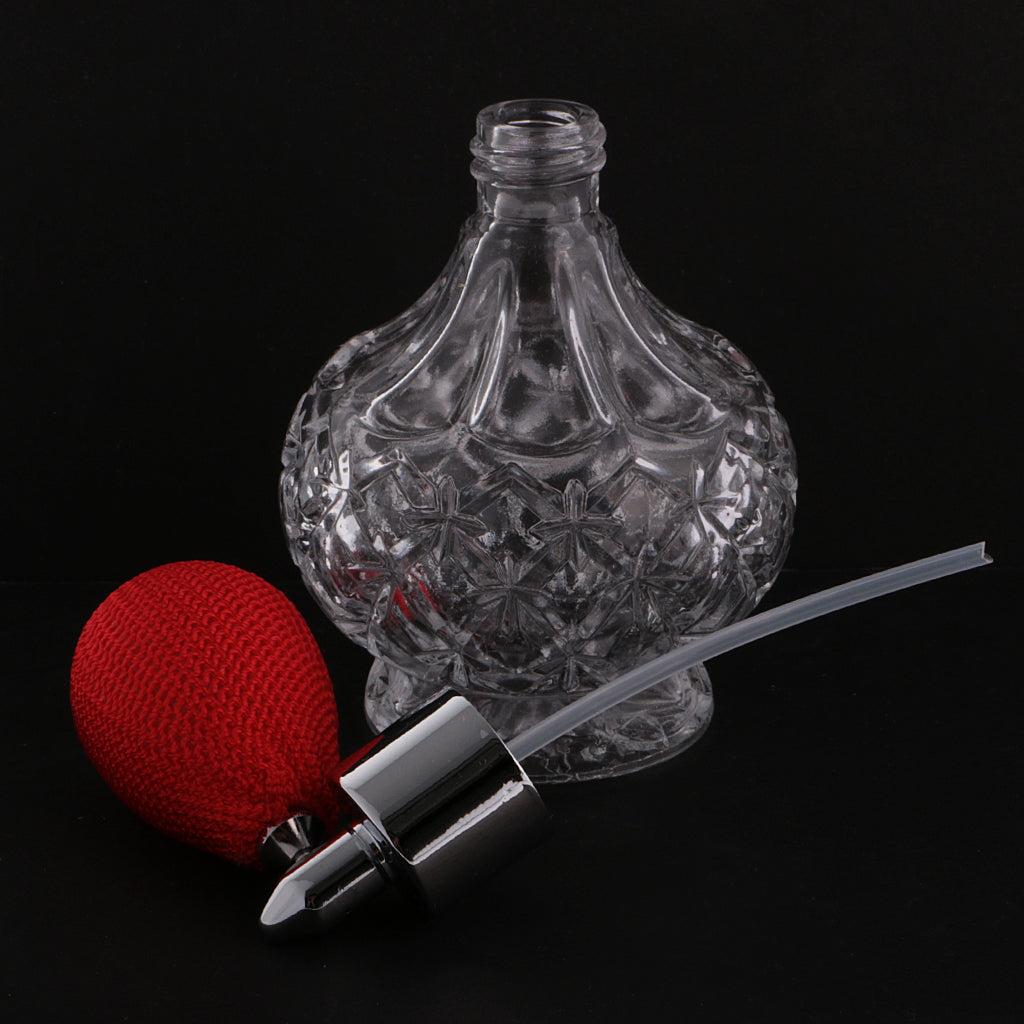 Retro Decorative Crystal Clear Glass Perfume Bottle Spray Scent Pump Refillable Travel Makeup Tools Lovers Gift 100ml Red
