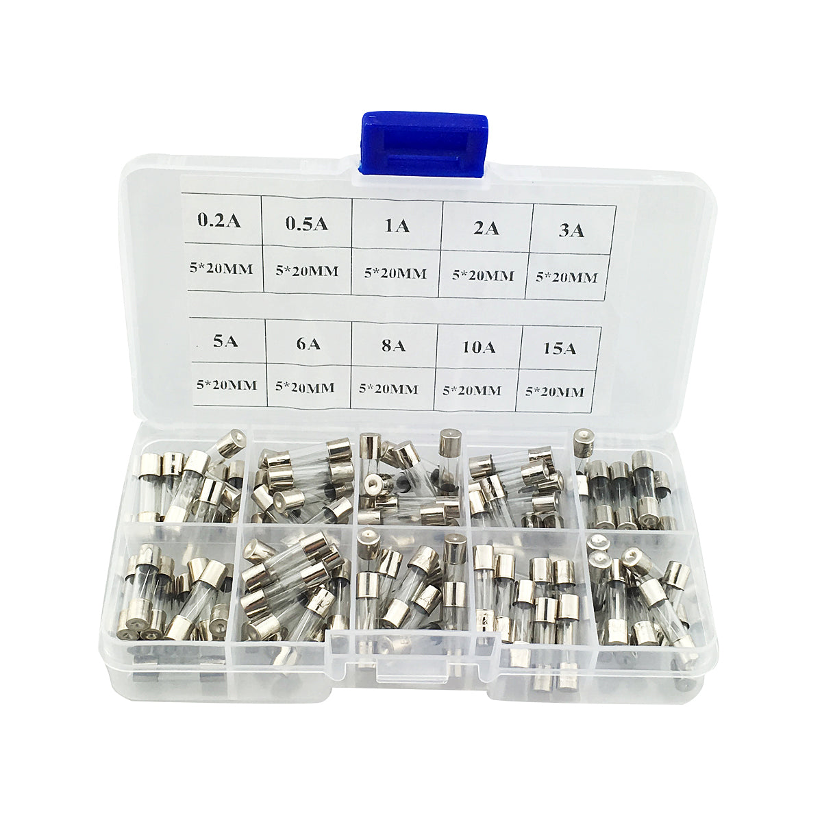100Pcs Fast-blow Circuits Glass Fuse 0.2A 0.5A 1A 2A 3A 5A 6A 8A 10A 15A