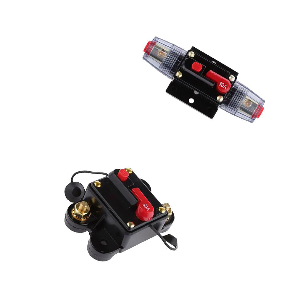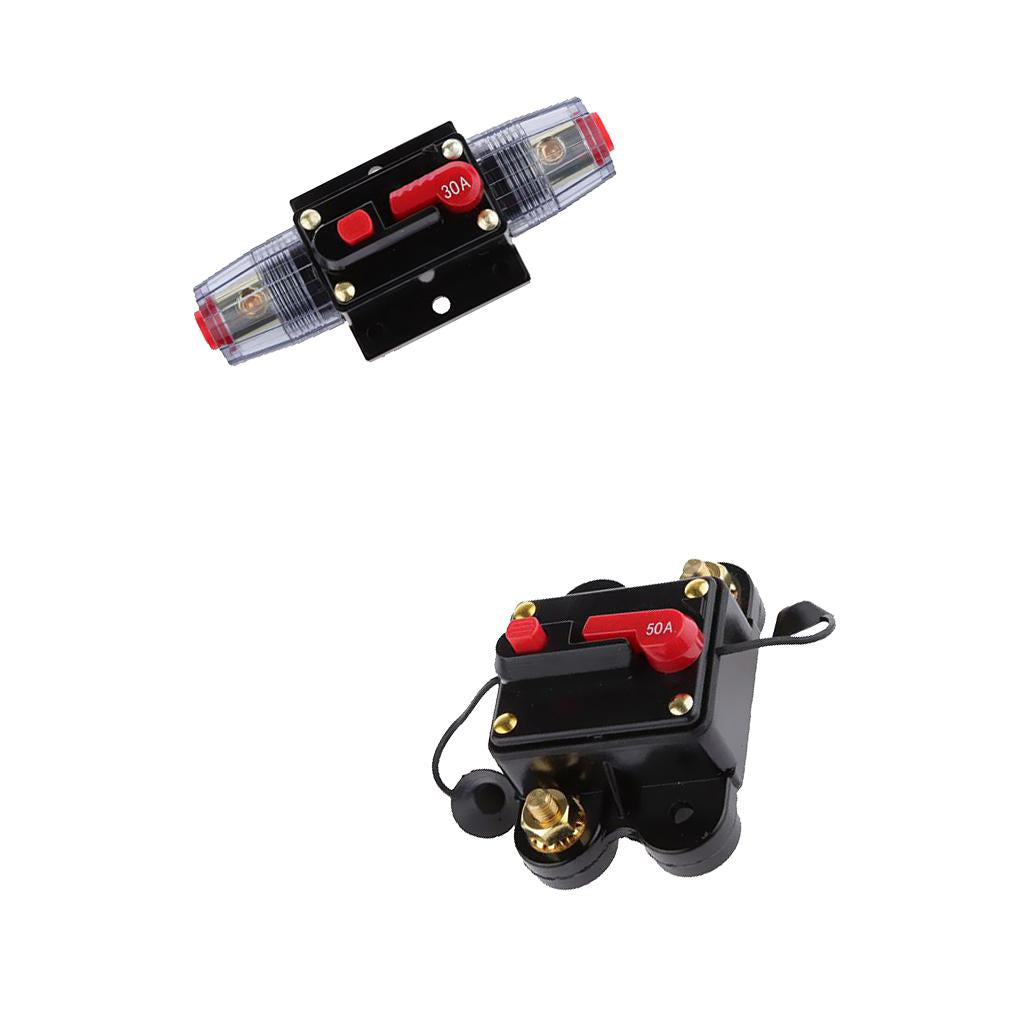 This is a Circle-30 Amp(30A) and Square-50 Amp(50A) car marine bike stereo audio circuit breaker reset fuse inverter combo