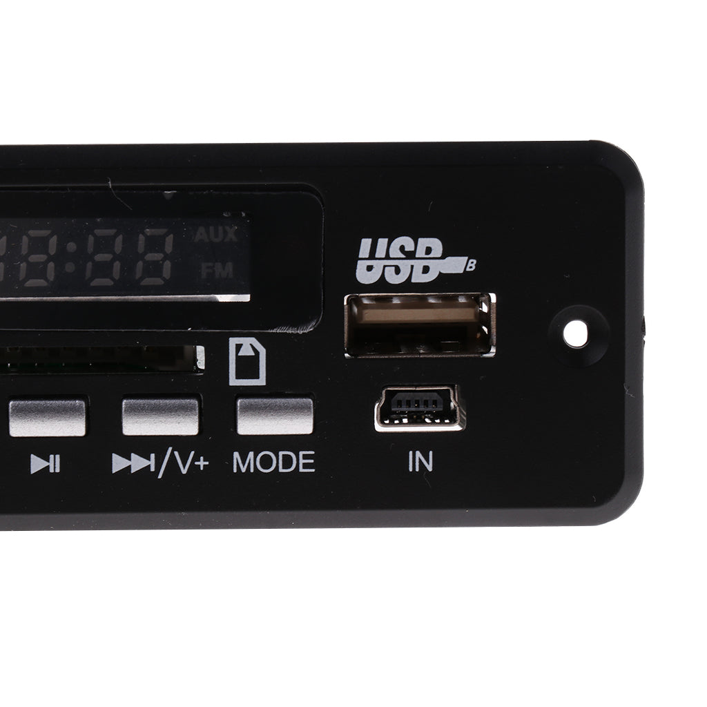 • Support USB/TF card switch, PREV,NEXT, fast forward, fast rewind,volume, EQ, play/pause, stop, single repeat, mute, shutdown and direct election. Support FAT16,FAT32 file system.