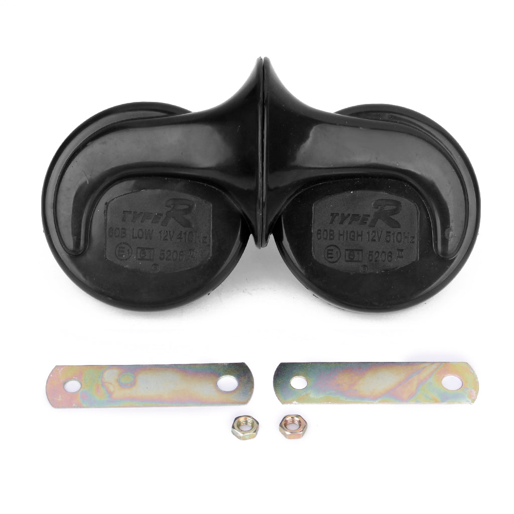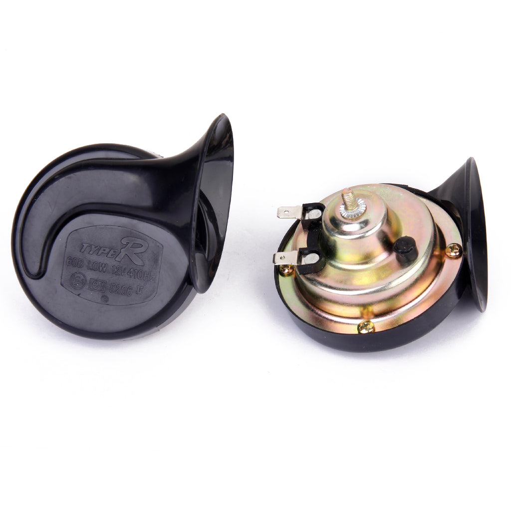 2 x Universal Loud Snail Electric Dual Tone Horns for Car Truck Black