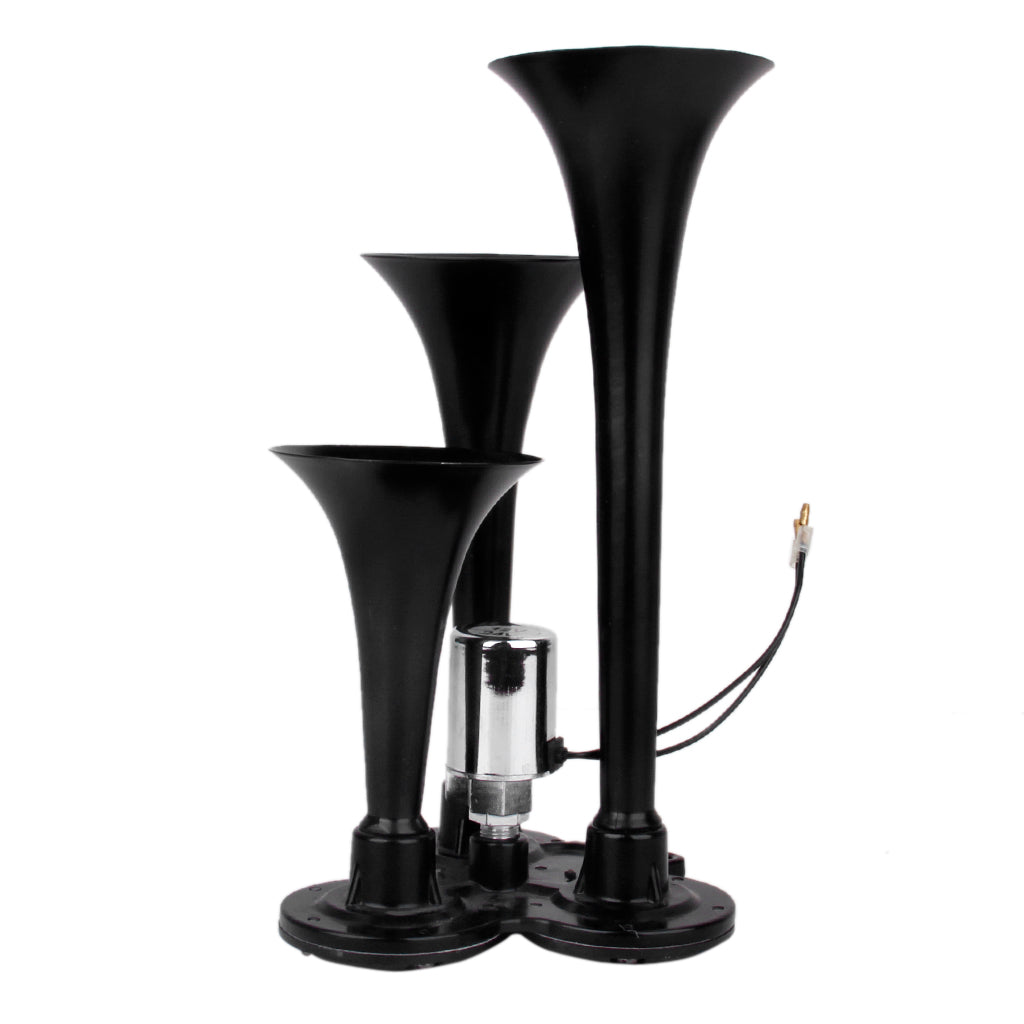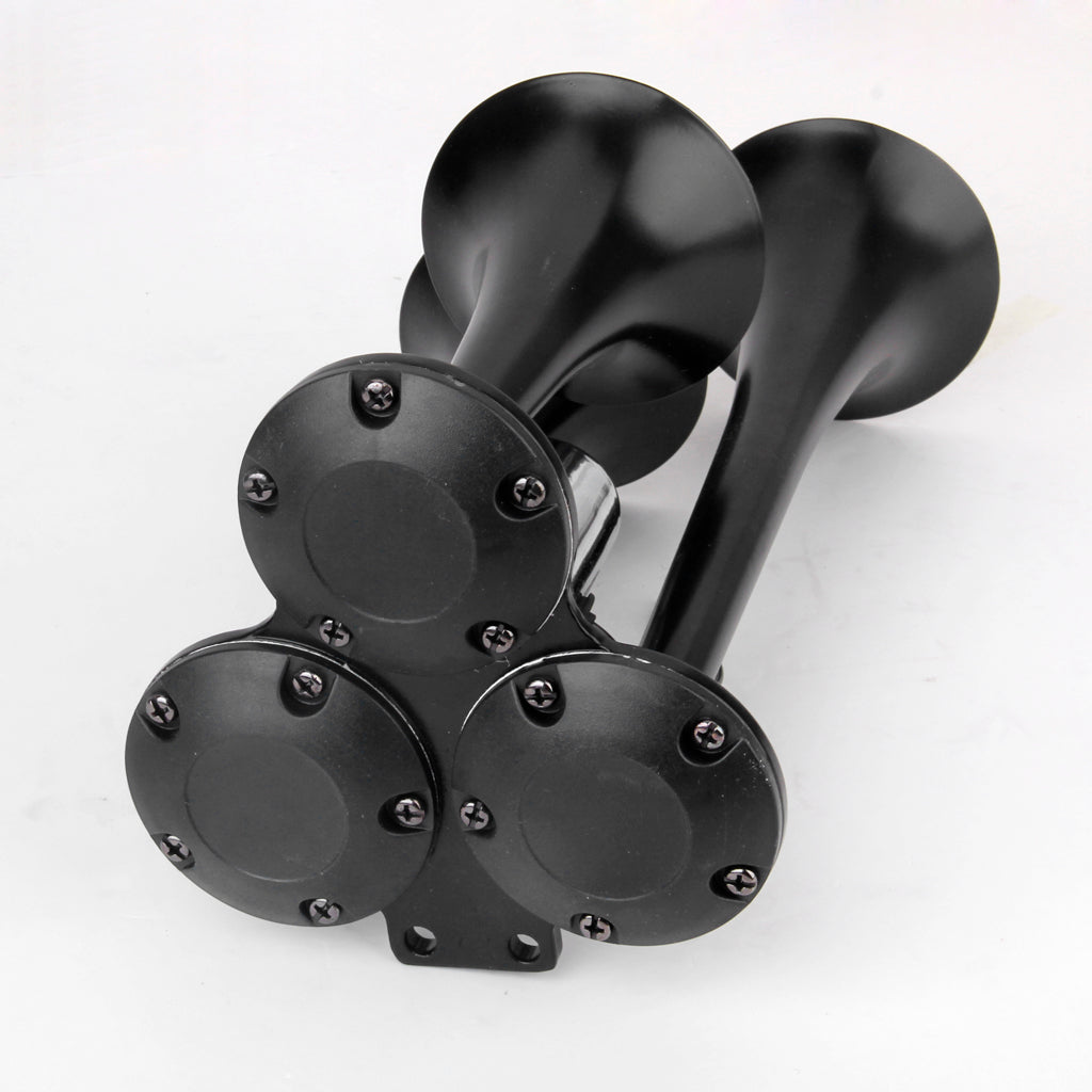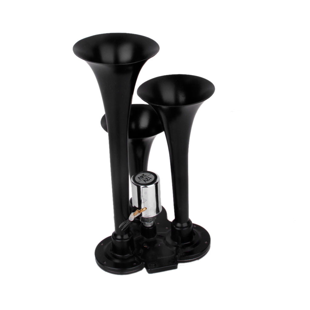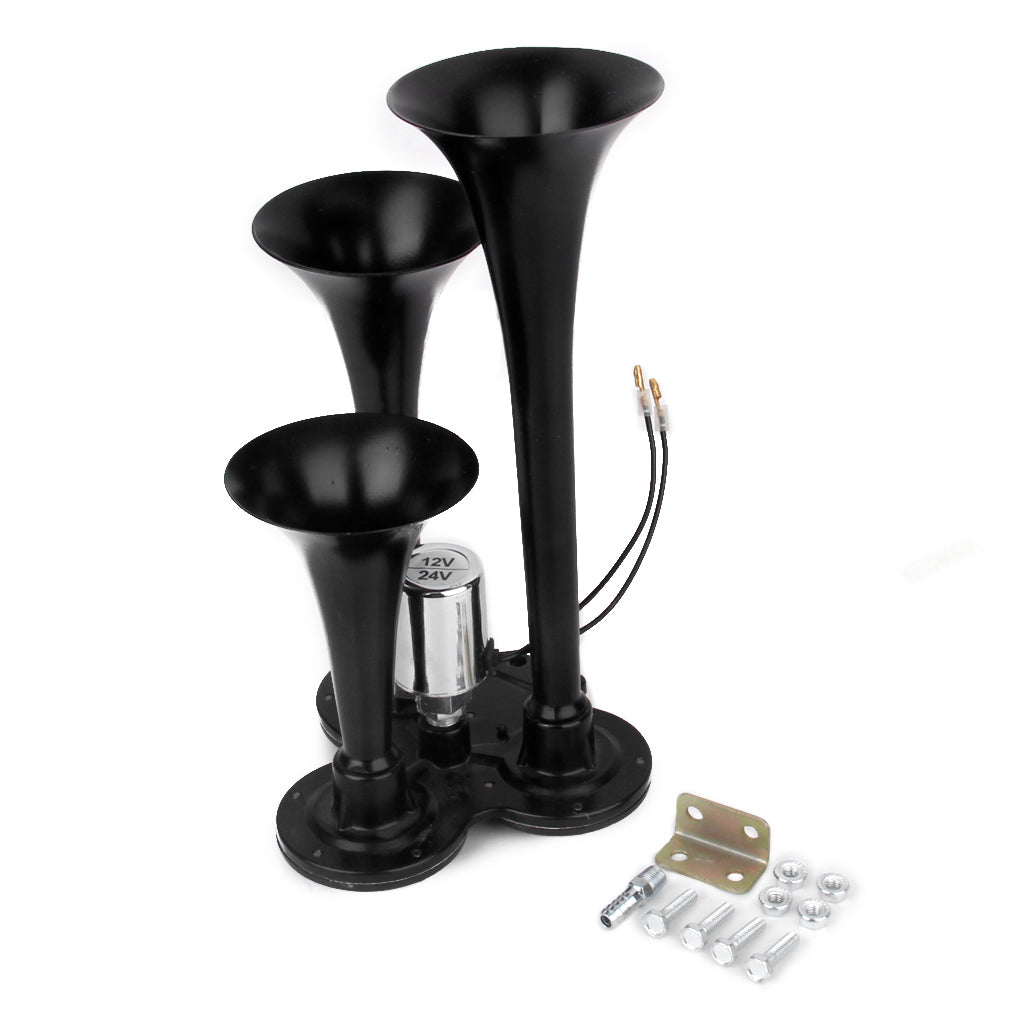 24V 12V Electrically Air Horn with 3 Tubes for Car Truck Lorry Black