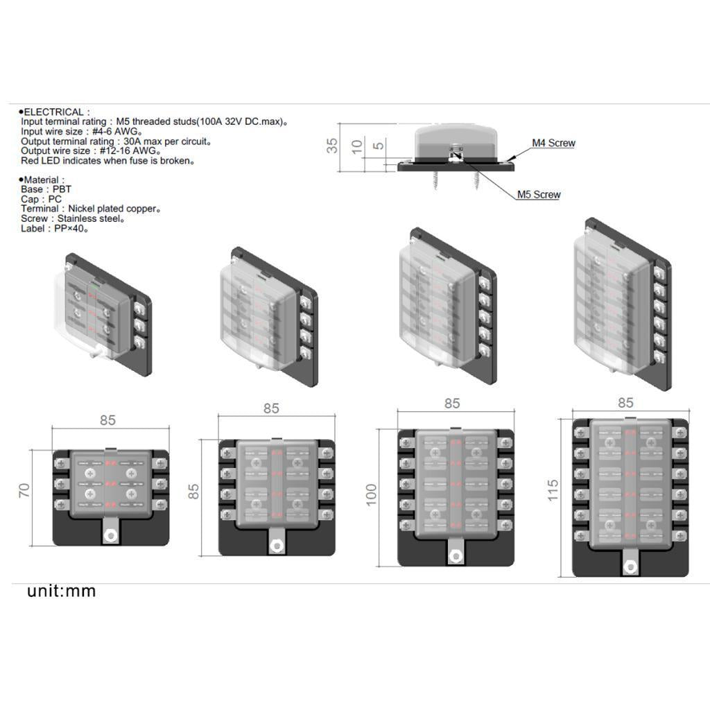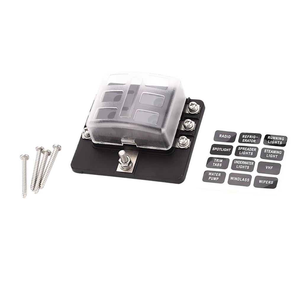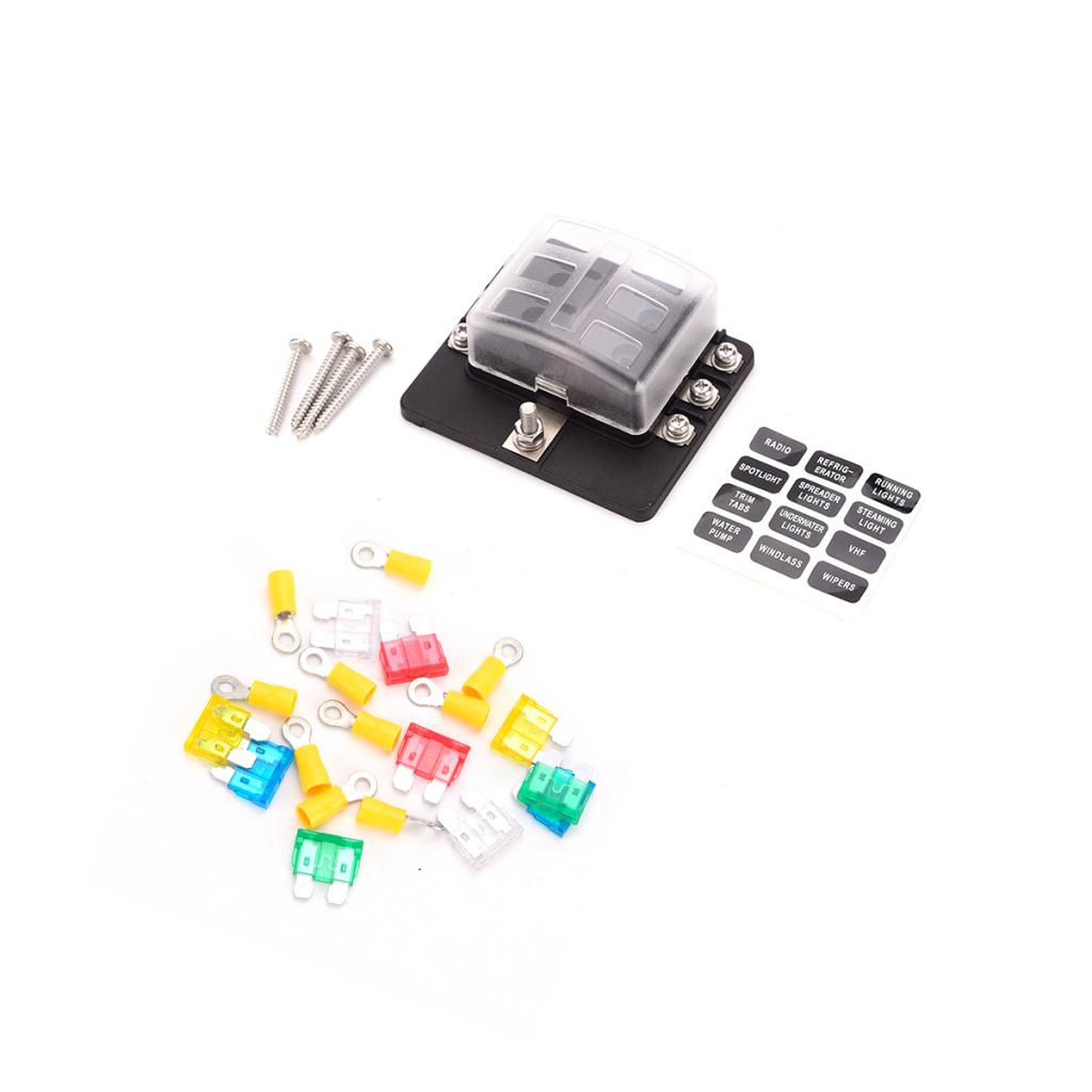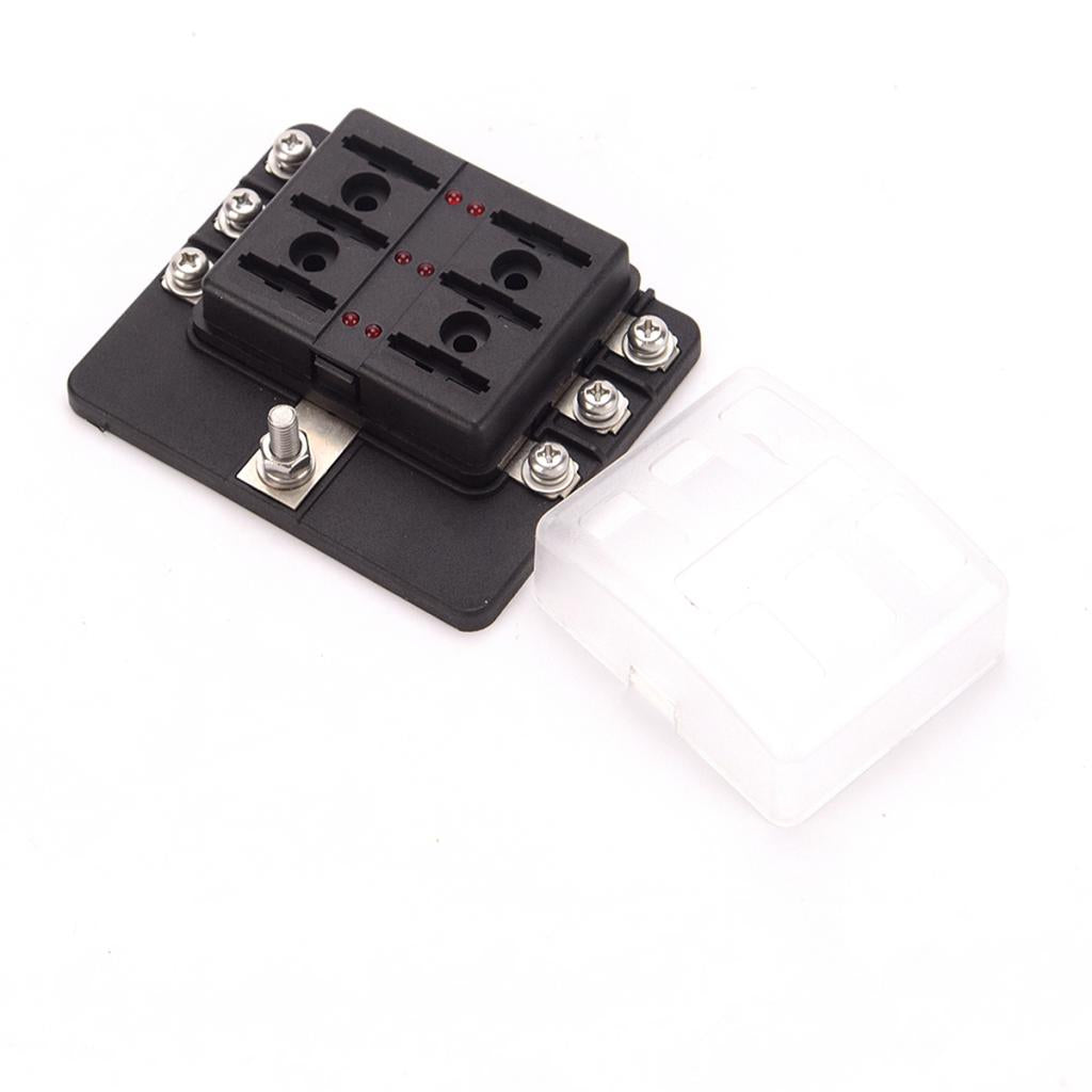Car 6-Way Blade Fuse Holder With Fuse Ring Terminals LED Indicator