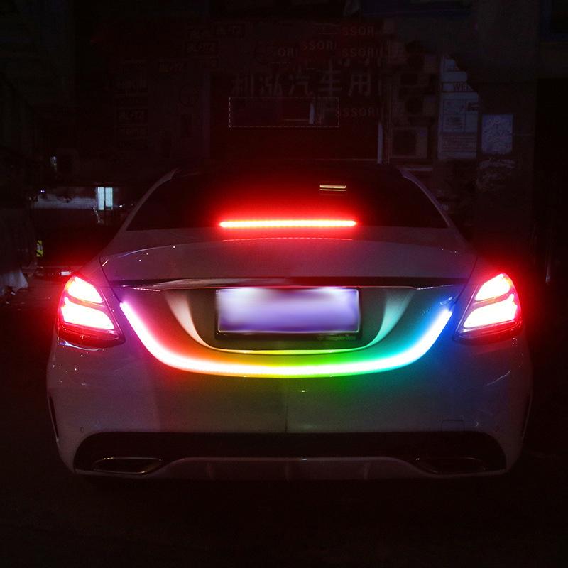 A Fashion Backup light,Running: Keep RGB light, Brake: Flowing Red light, Turn left: Flowing left direction red light, Turn right: Flowing right direction red light, Double flash: Flowing double direction Yellow light; Reversing: White Light.