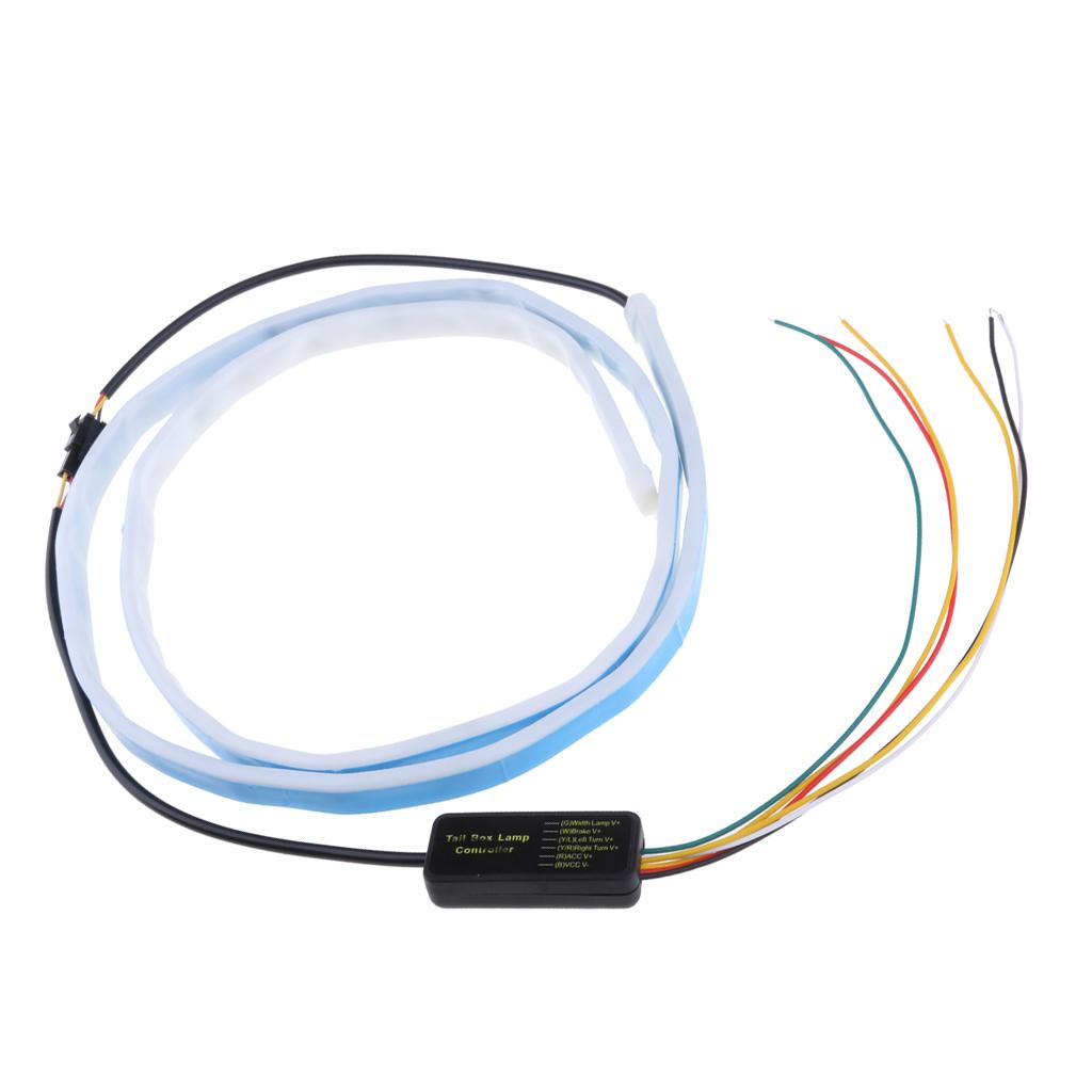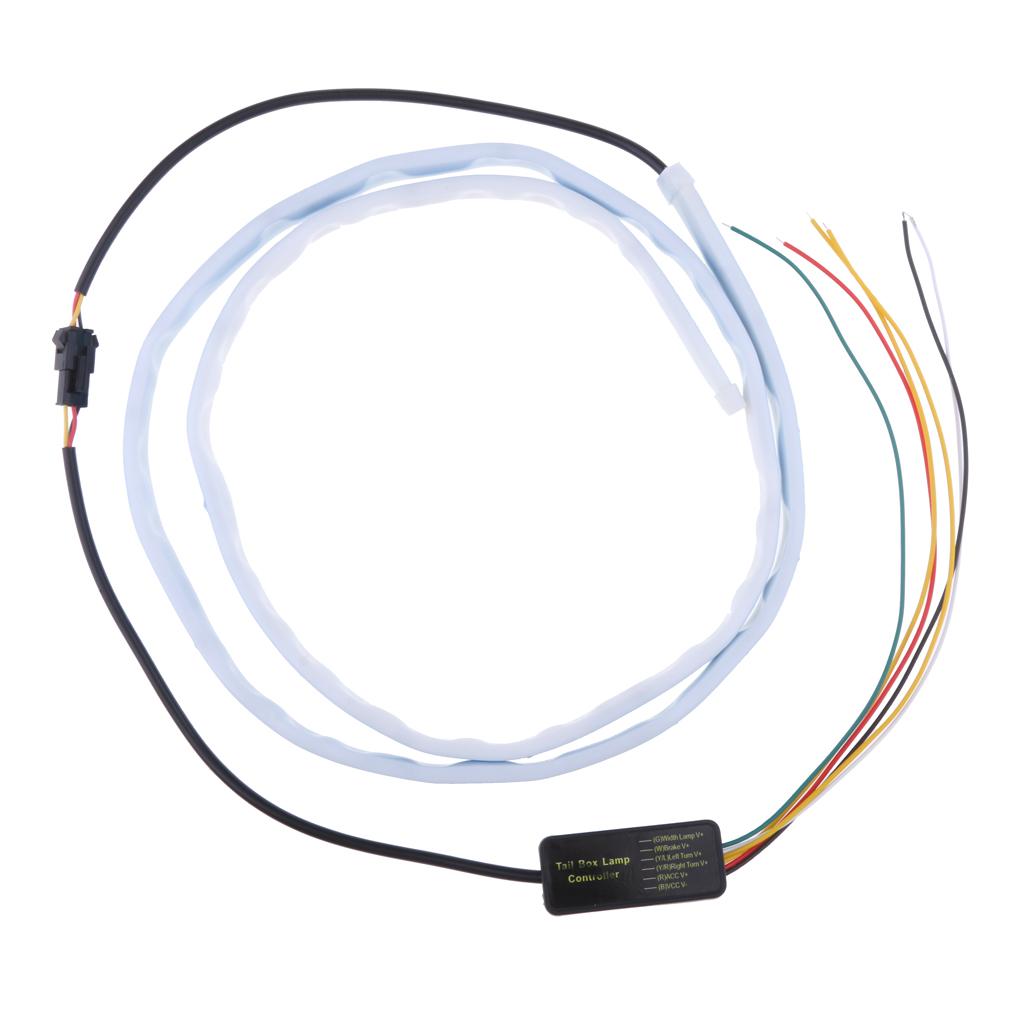 1,Red wire:Connocting to ACC Posotive (+),Black wire: Connecting to Ground Wire(-).2, Yellow Wire 2pcs,Mark (L) Turn Left Signal Posotive (+),Mark (R) Turn Right Signal Posotive (+). 3,White Wire: Braking Signal(+). 4, Green Wire: Connoction Taillight (+),When turn on and turn off operation.