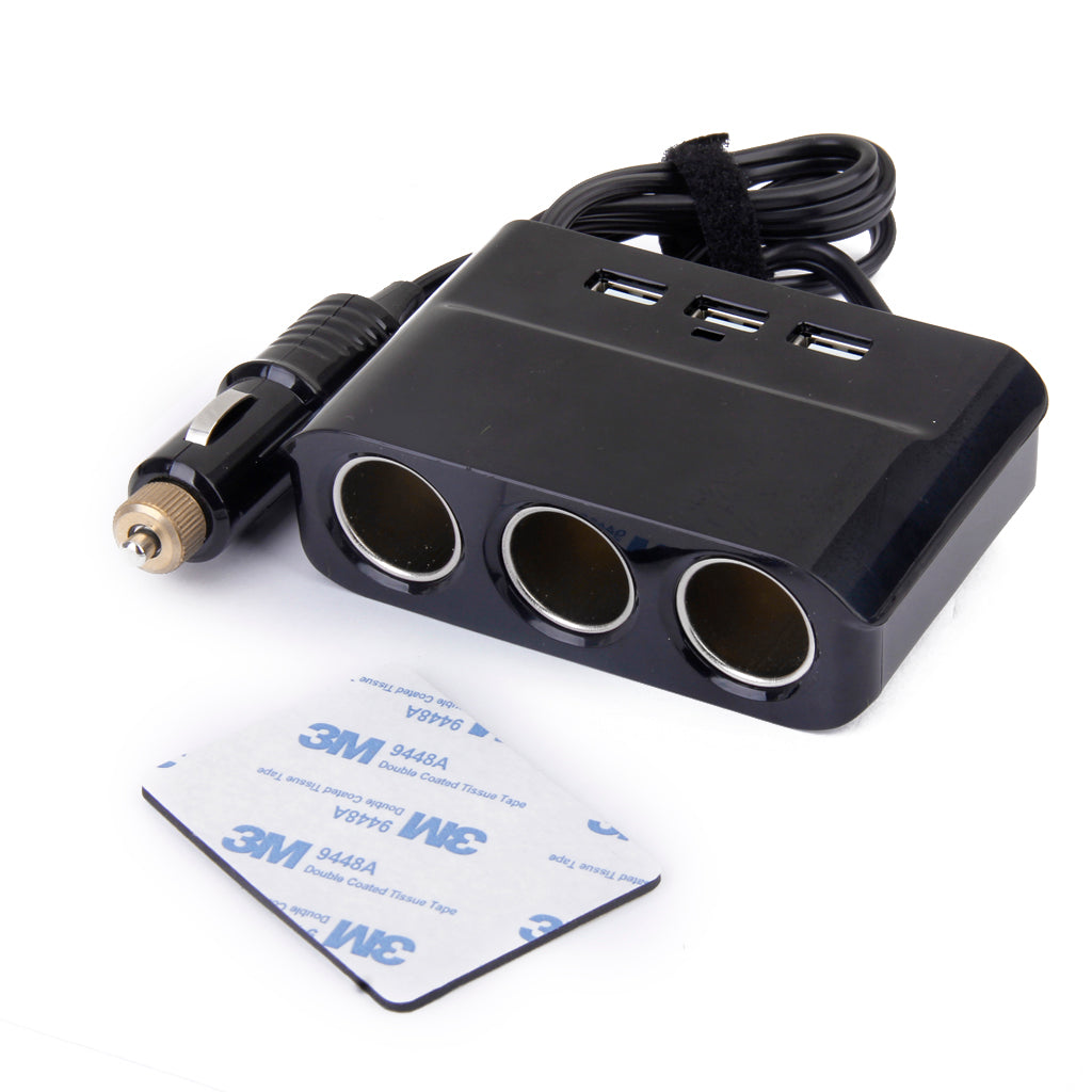 MagiDeal 3 Way Multi Socket Car Cigarette Splitter USB Port Charger 12V-24V