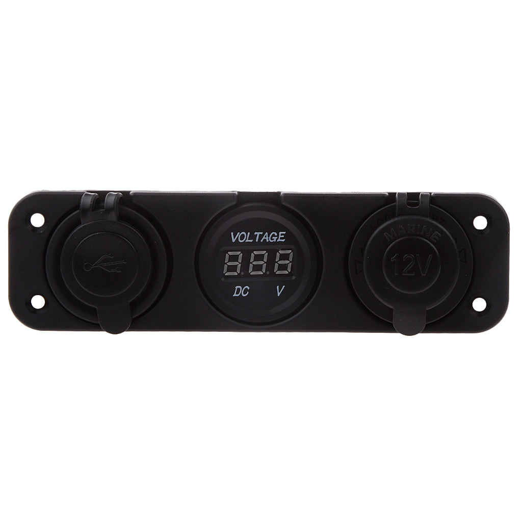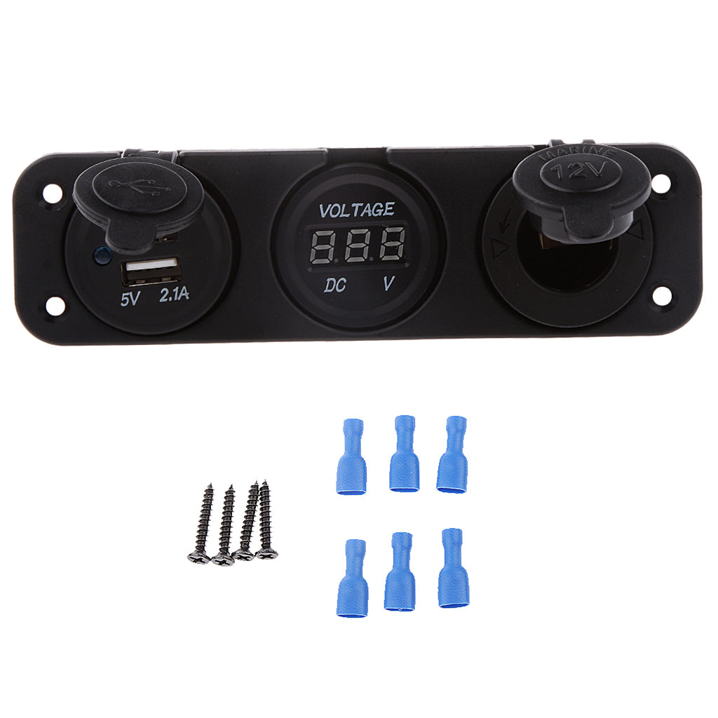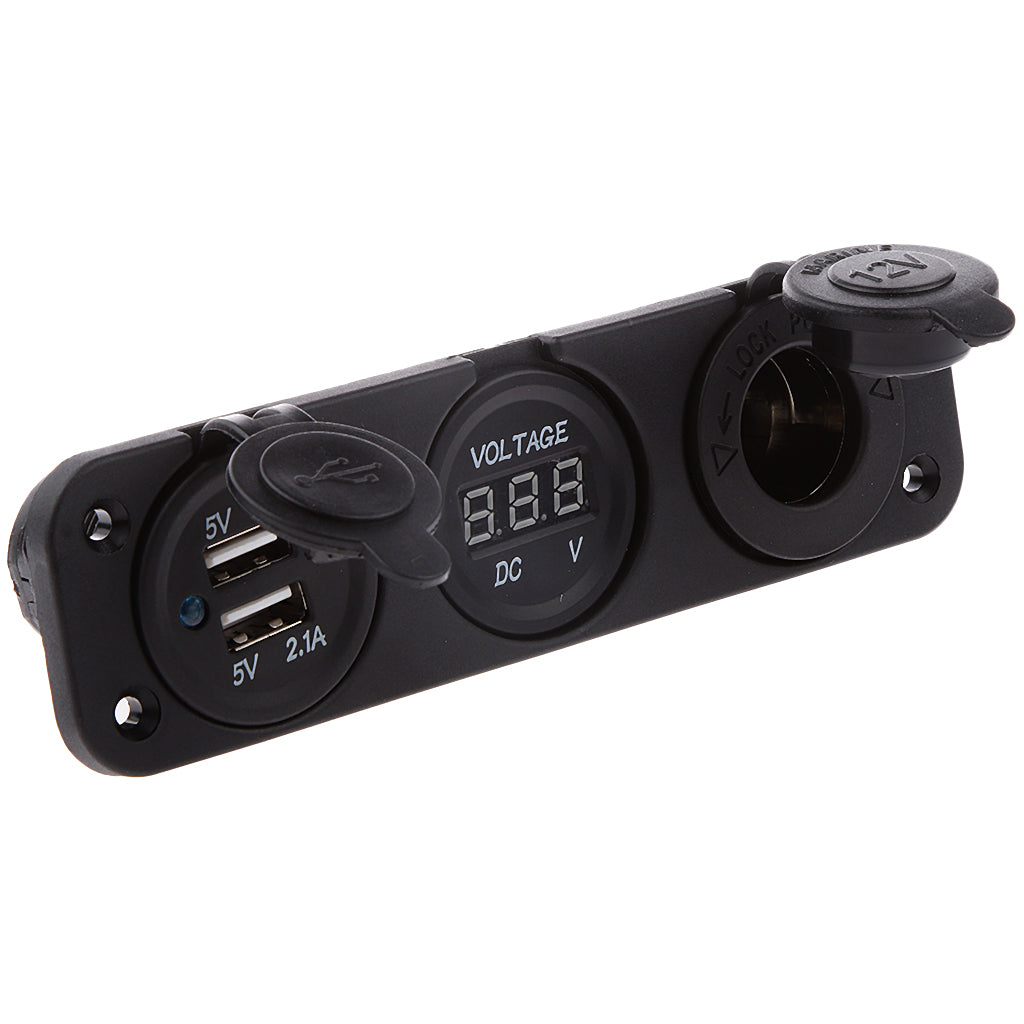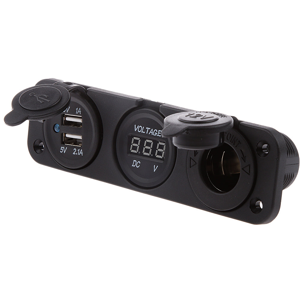 Marine 12V Cigarette Lighter Socket & Voltmeter & USB Charger 5V 1A 2.1A for Motorbike Boat Caravans Splashproof