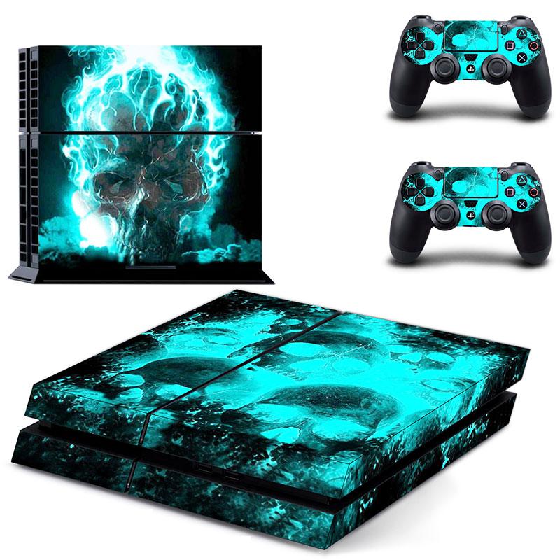 Blue Skull Skin Sticker For PS4 Playstation 4 Console Controller Decal Set