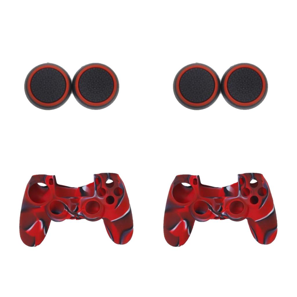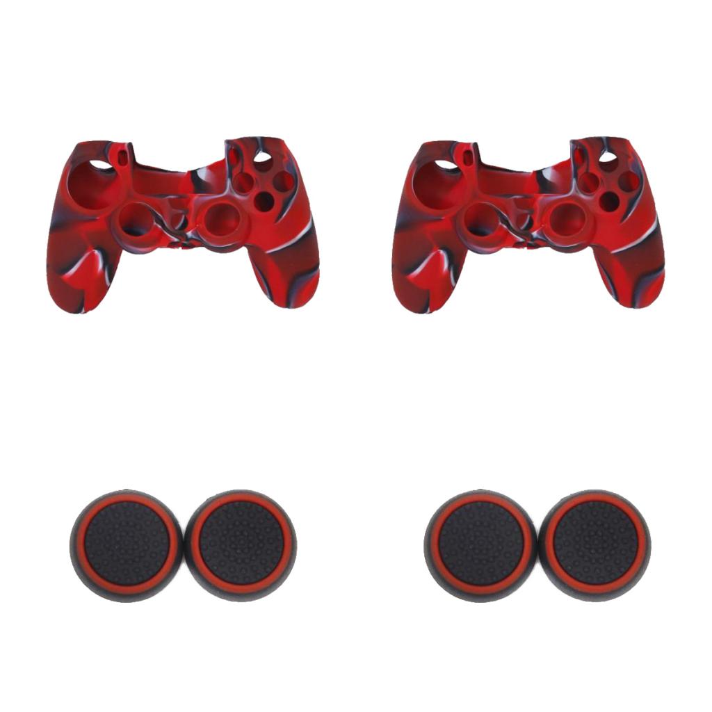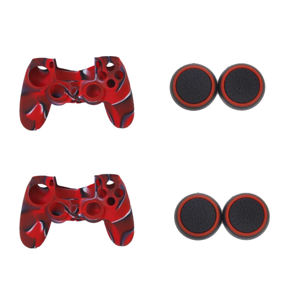 Camo Silicone Skin Case Cover +Thumbstick Caps for Sony PlayStation 4 PS4