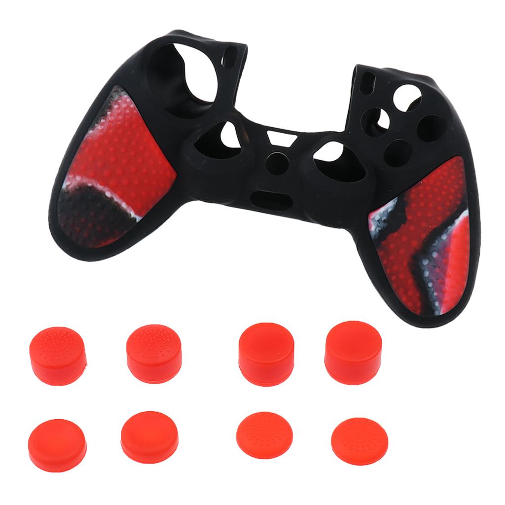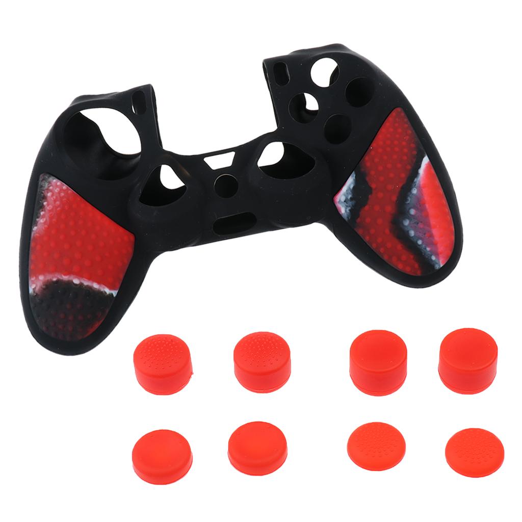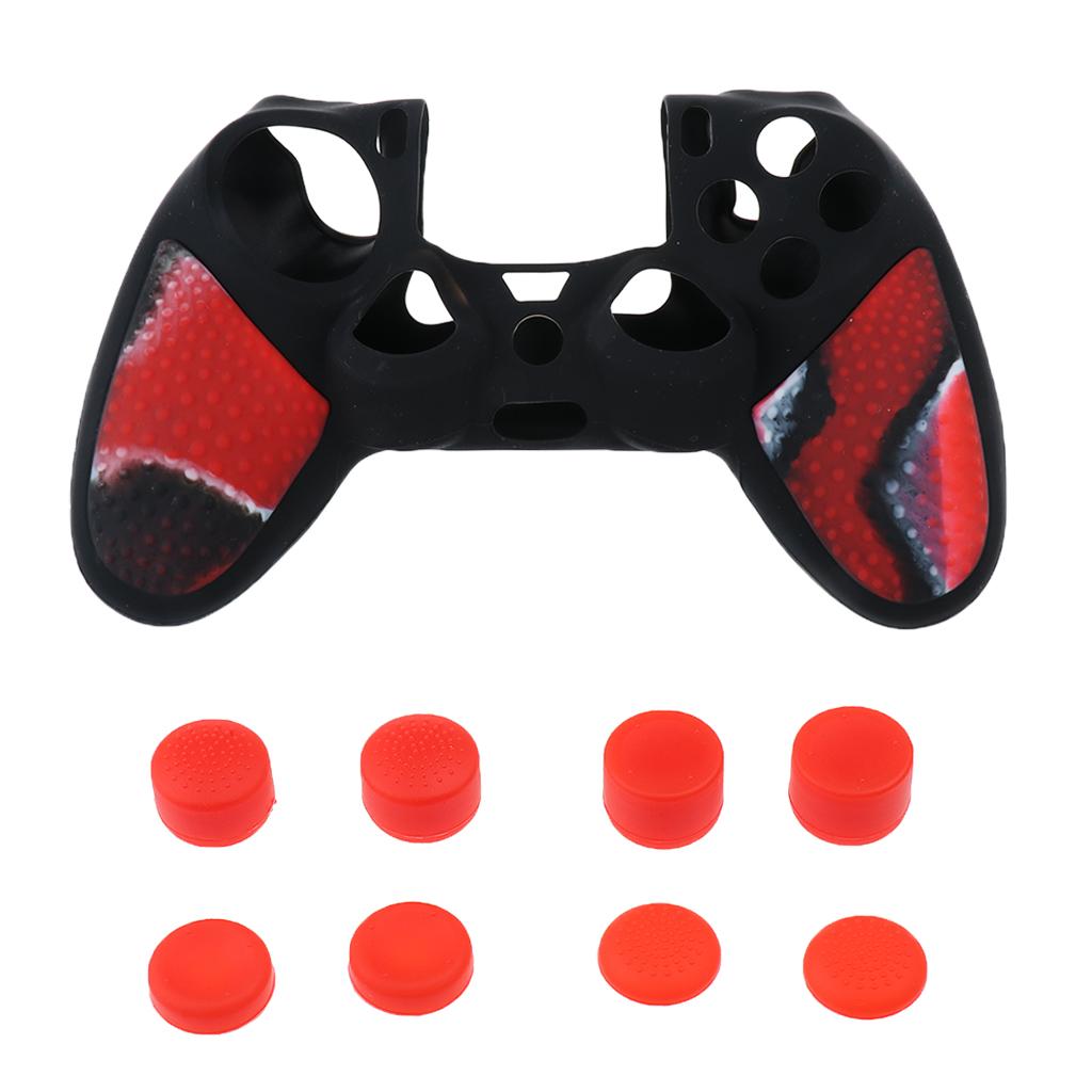 Dustproof Gamepad Silicone Case Cover +8 Pieces Joystick Caps for Sony PS4 Game Controller