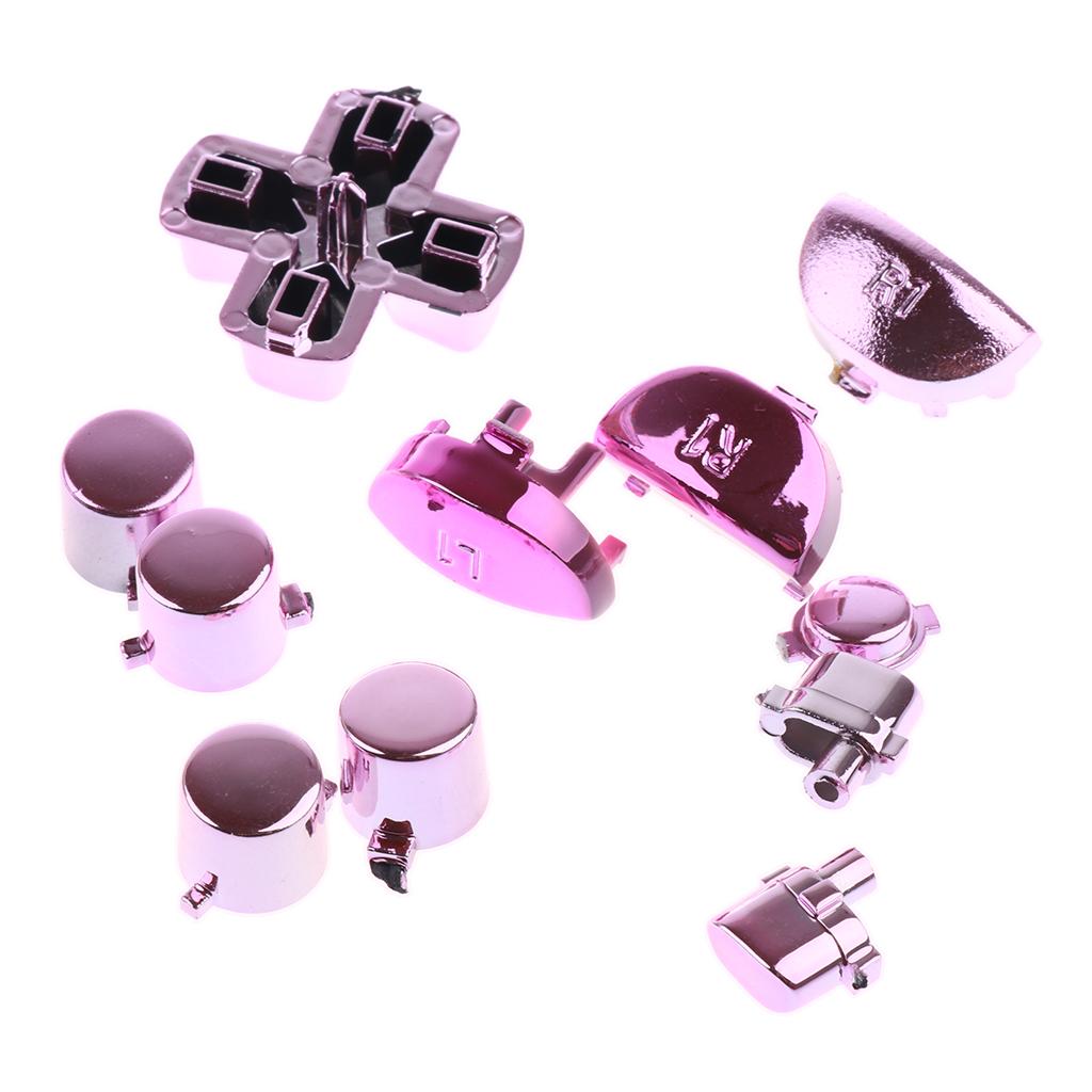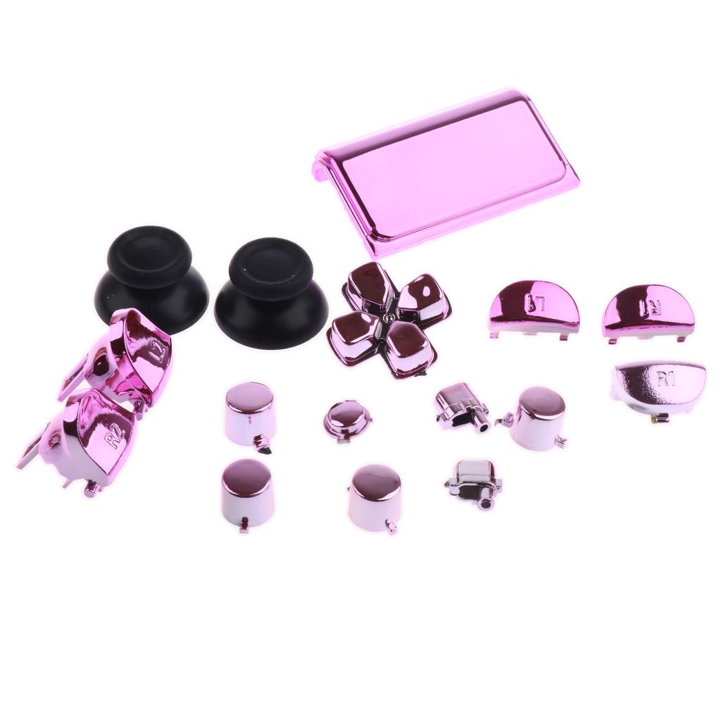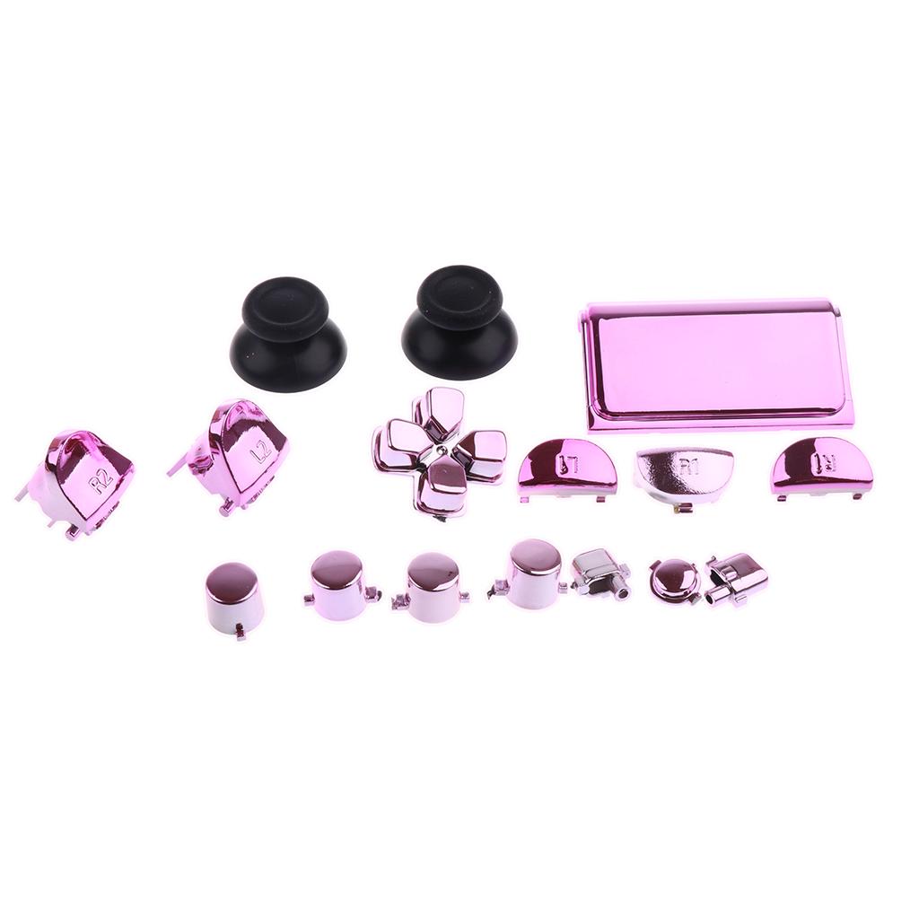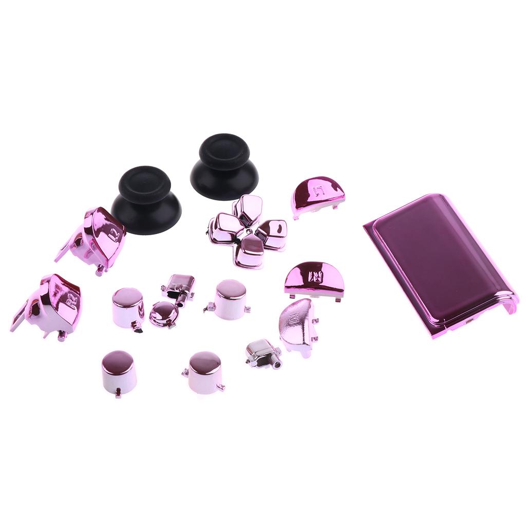 Full Buttons Set Replacement Parts Chrome Triggers for Sony PS4 Controller Pink