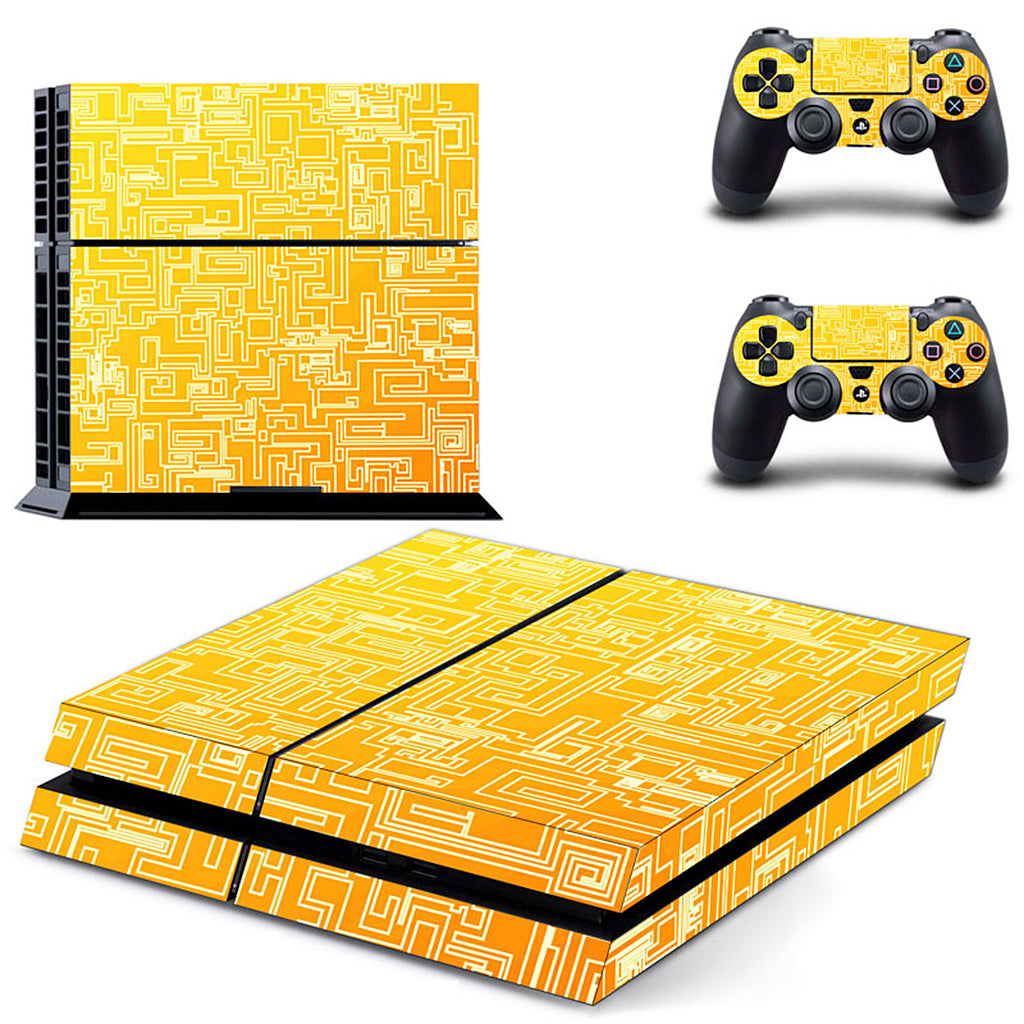 Yellow Tech Skin Sticker For PS4 Playstation 4 Console Controller Decal Set